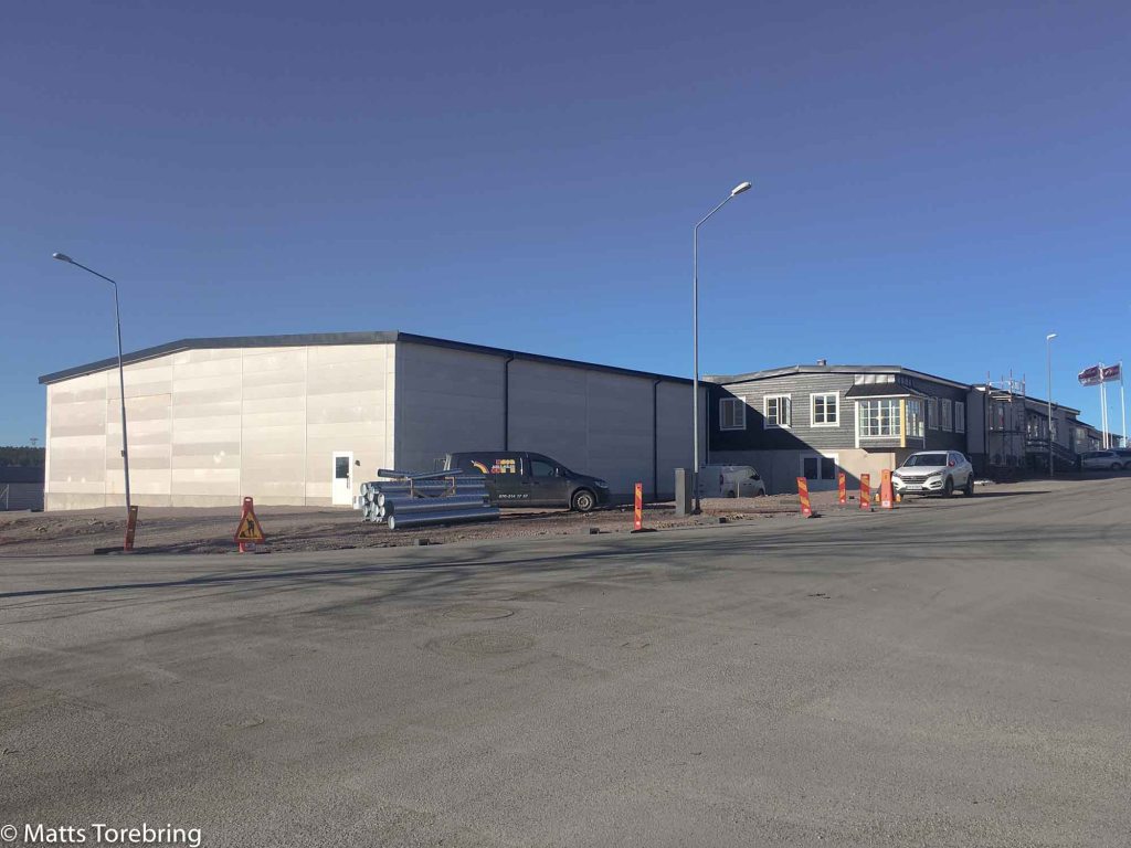 Det ser inte så stort ut bygget men det innefattar 1 000 m2 nytt höglager, 150 m2 workshop och 150 m2 med sex nya kontor och konferensrum. Trots allt återstår en massa bitar ännu, som skall komma på plats. Nästa vecka monteras innerväggar av glas mellan kontorsrummen, samt el och data kopplas in. Ventilation och frysrum ska trimmas in. Den gamla kyl- & frysen skall demonteras.