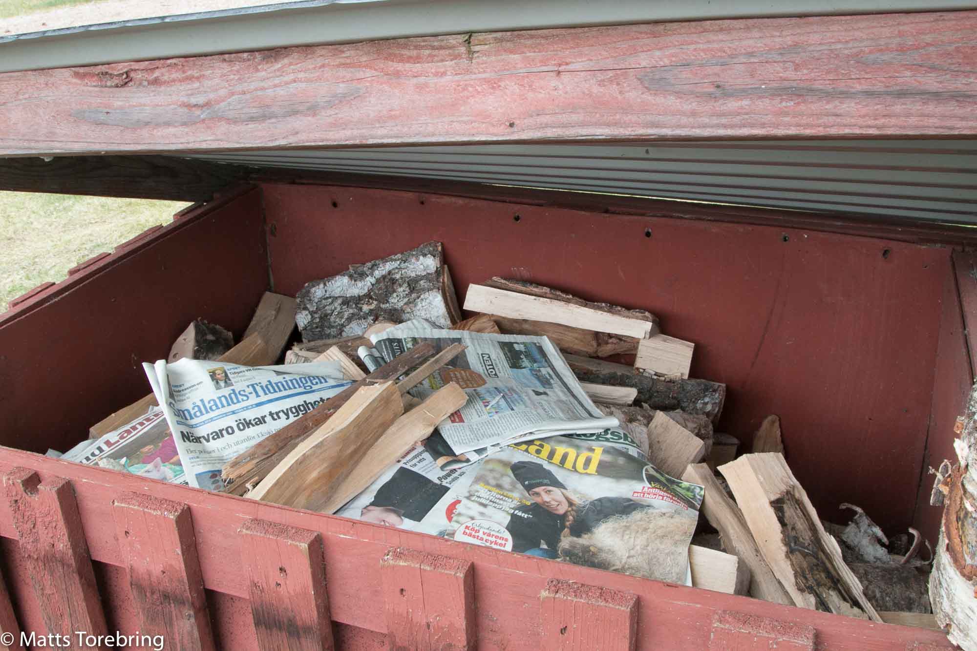 Vilken service till oss husbilsturister, en hel vedlår med torr fin ved, för att tända upp en brasa.