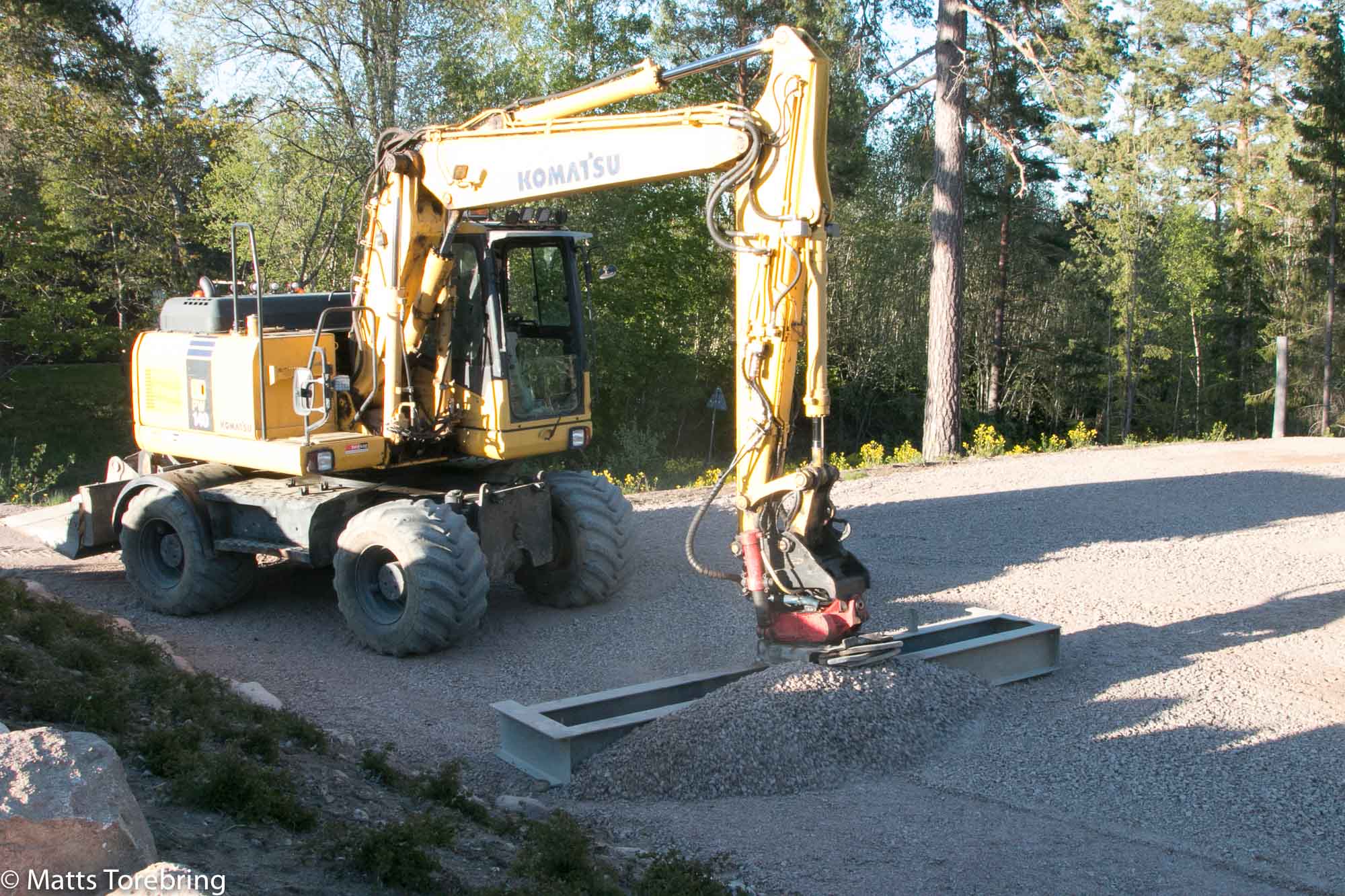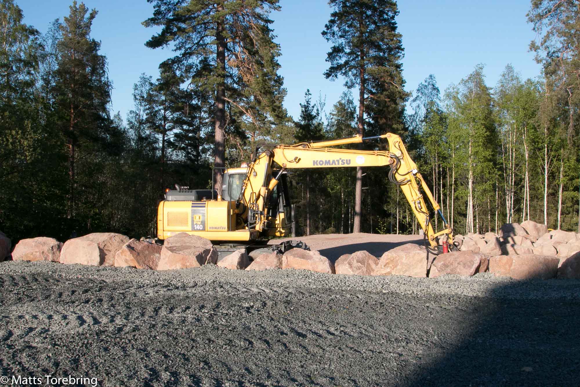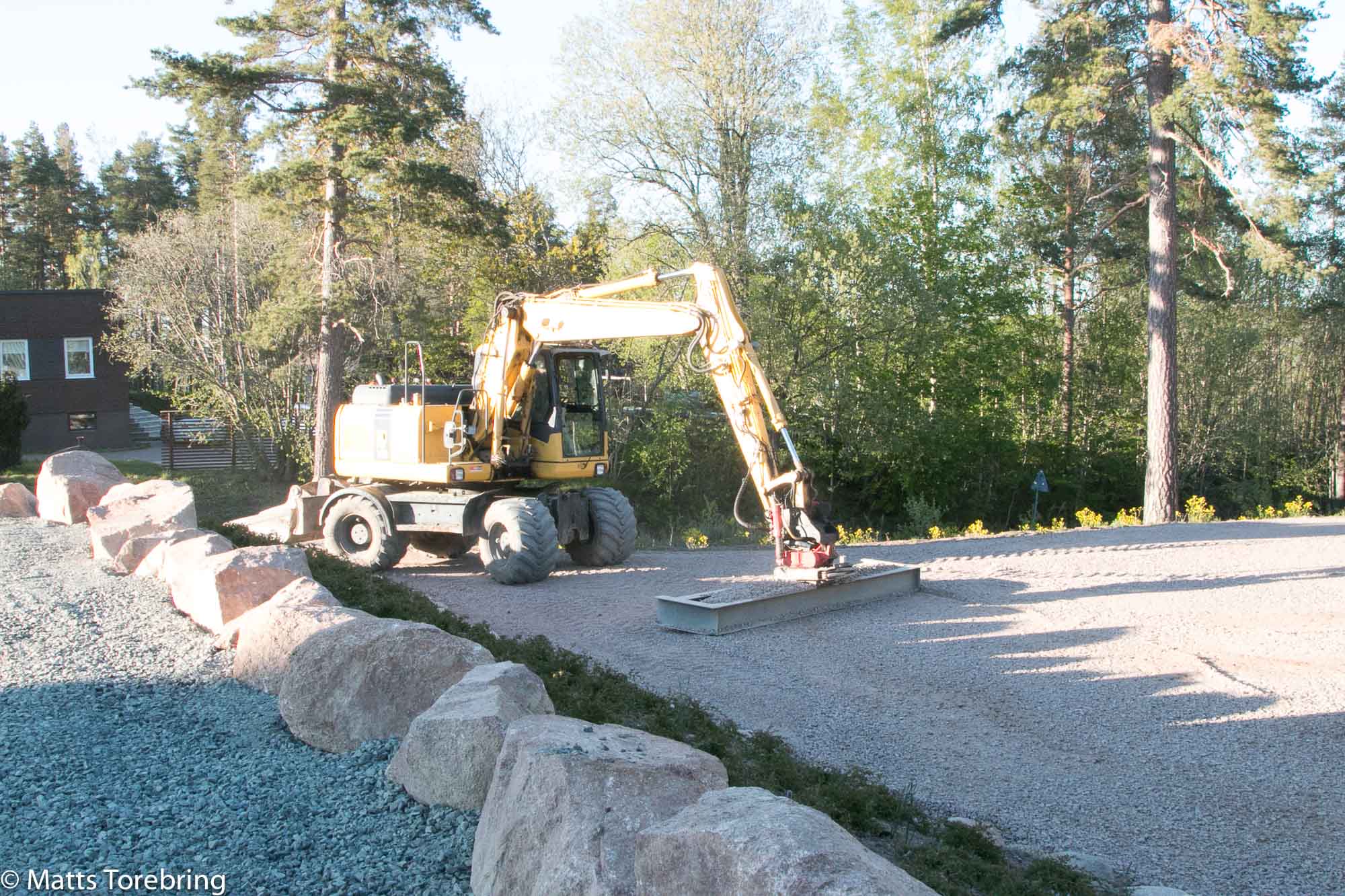 På förmiddagen placerade Karlsson ut alla stor stenar på tomten, samt grävde rabatt för matjord och senare plantering.