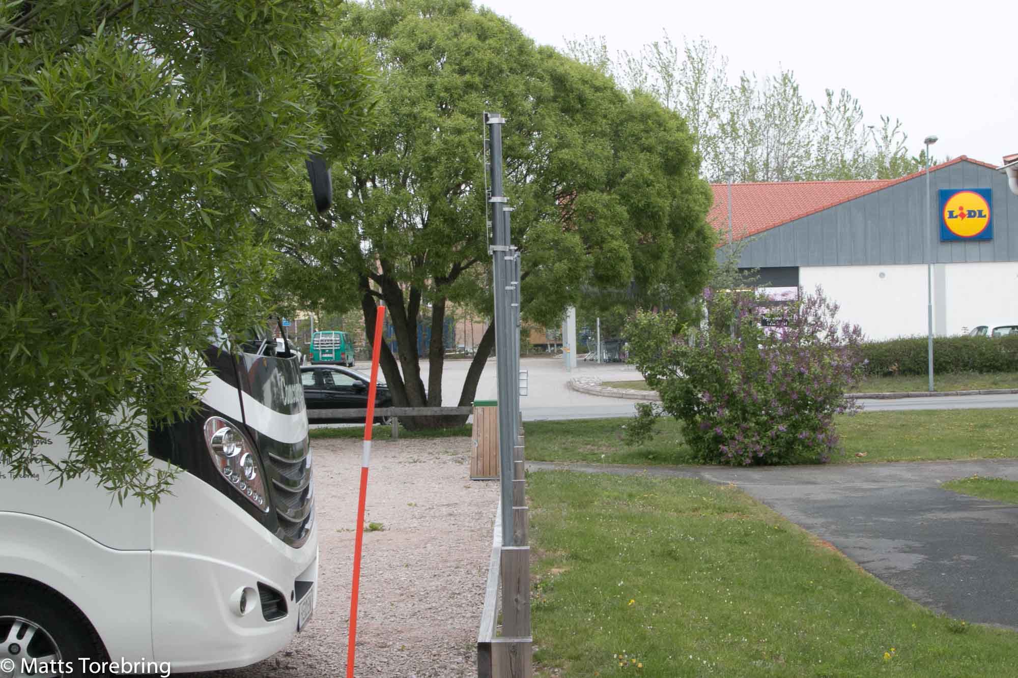 Birgitta behövde ett nytt batteri i sin fina klocka. Klart vi styrde till Vetlanda, där det finns en första klassens urmakare. Sedan älskar jag denna ställplatsen. Lika spännande varje gång, att handla något nybakat till frukost. Lidl finns med en massa annat gott att välja mellan, på bara tjugo meters avstånd. Föredömligt av Vetlanda kommun, att anlägga fem ställplatser mitt i centrum, men ändå tyst.
