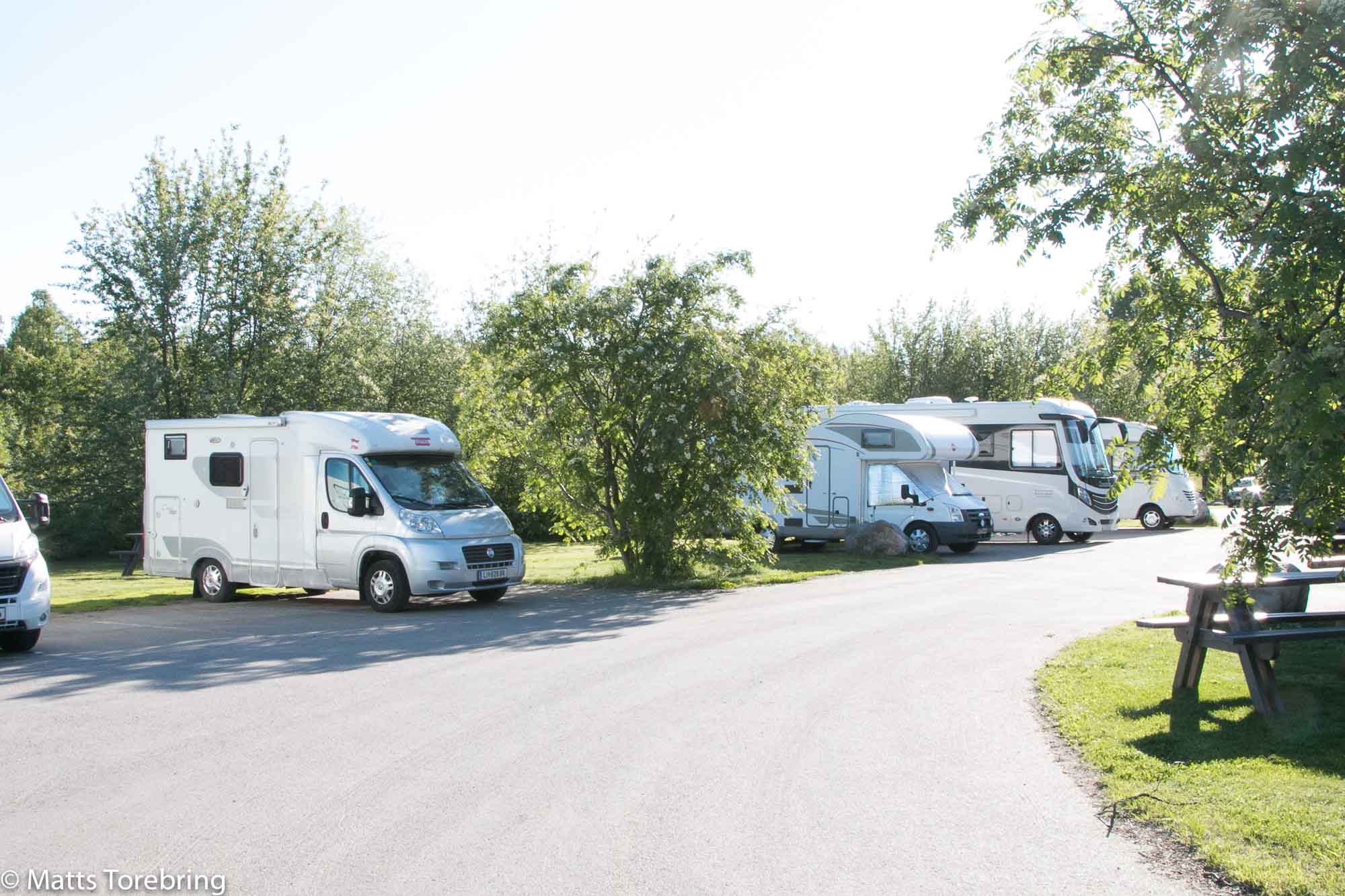 Vi tittade in på flera fina campingar, men vände i dörren. Vi vill ju bara sova några timmar. Då är detta ett friare husbilsliv.