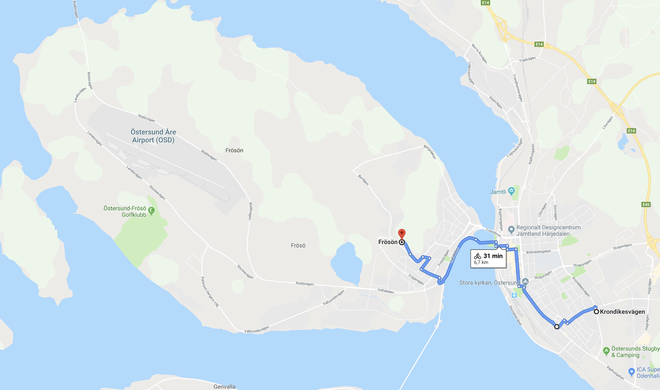 Idag tog vi en liten cykeltur, bara drygt sex km och vi var över till Frösön. Inte visste jag tidigare att det finns en slalombacke där. Som sagt vi skickar så mycket post hit från jobbet, så nu vet jag att ön är ganska stor.