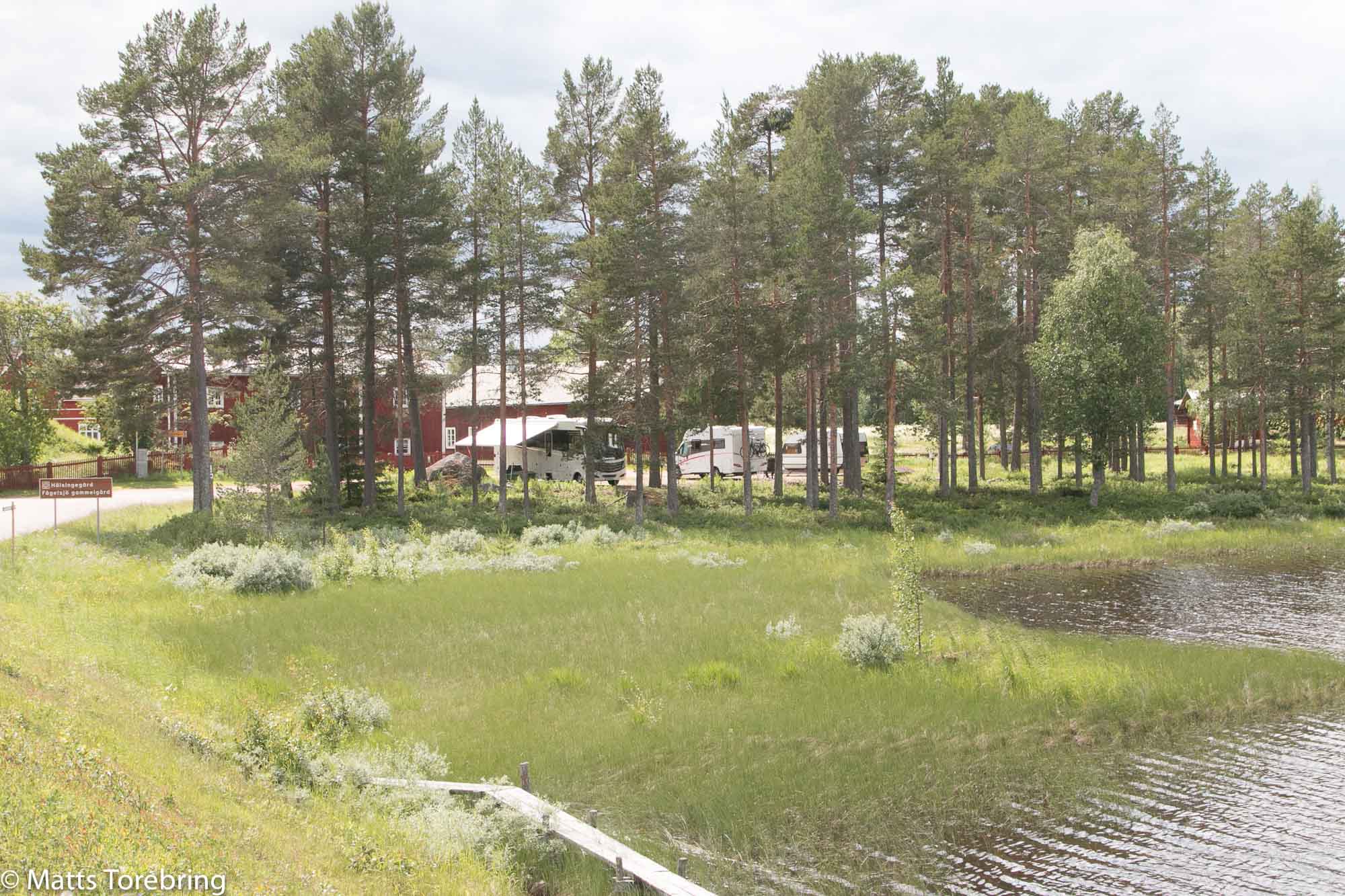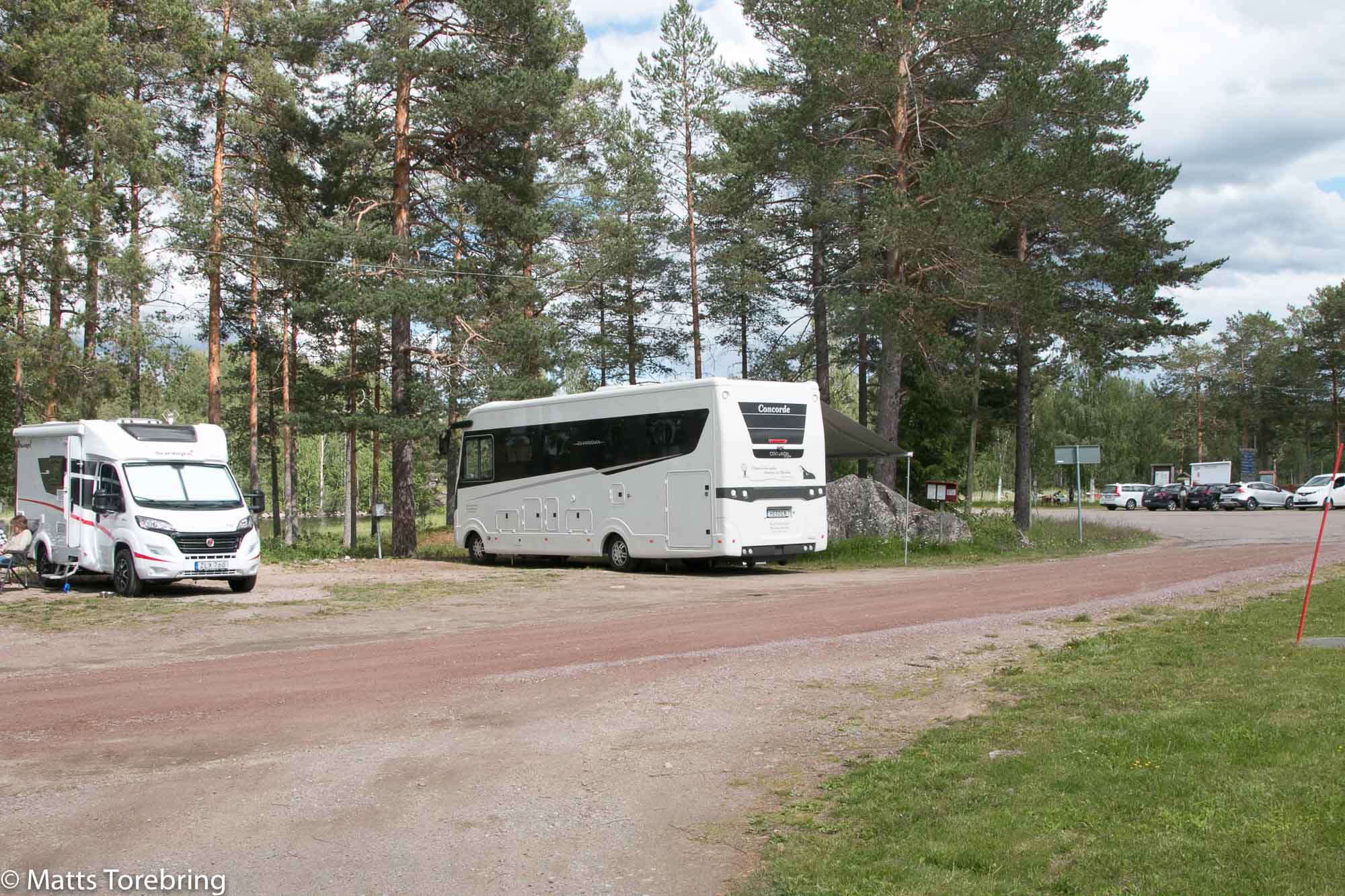 Det ryms säkert flera husbilar på parkeringen, när café gästerna har åkt hem. Det är måttligt med myggor trots allt, de är snälla och sitter still, tills man hinner slå dem.