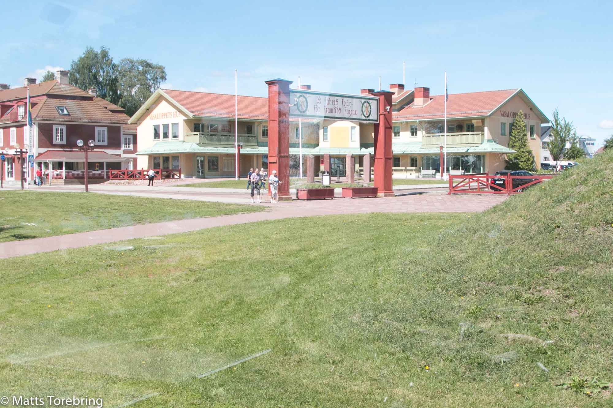 Orsa bara viftade vi förbi, sedan var det samhället slut. Vi kör E 45 genom Mora och Birgitta får med en dålig bild av Vasaloppsmålet. Hoppas vi kommer tillbaka så jag får en ny bild.