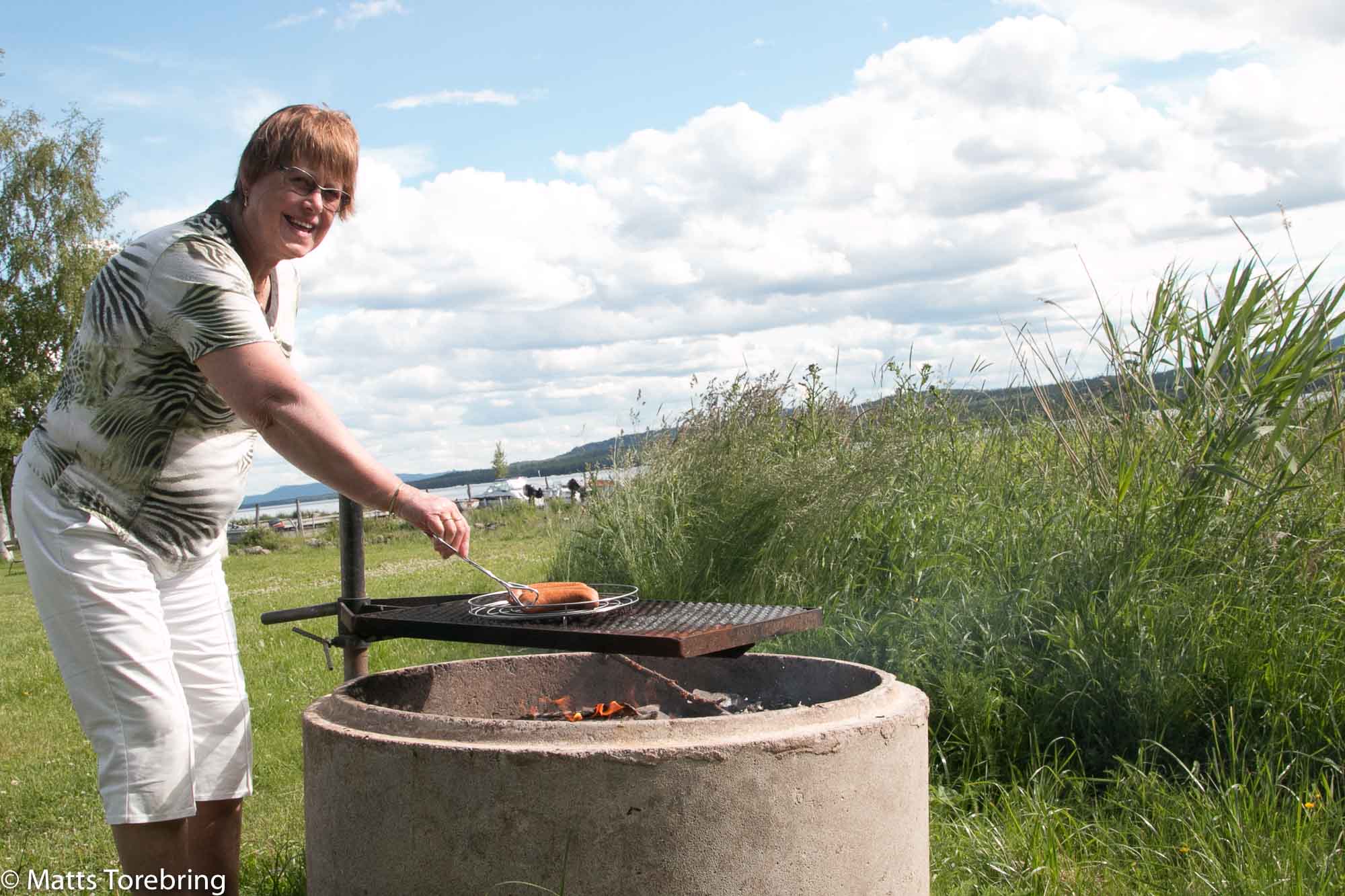 Ett antal utplacerade grillar och dessutom laddade med ved. Fiffig höjdinställning av grillgaller.