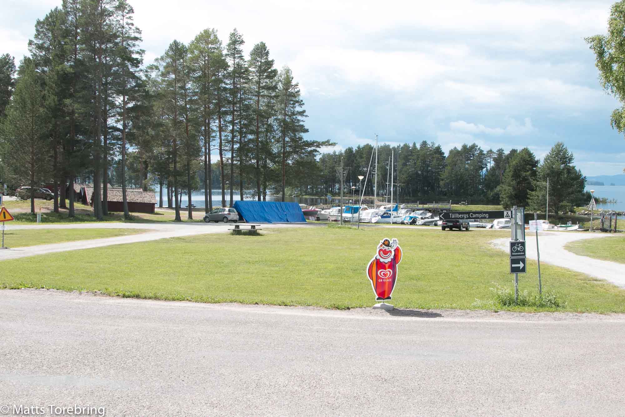 Glassgubben hälsar oss välkomna till Tällbergs Camping