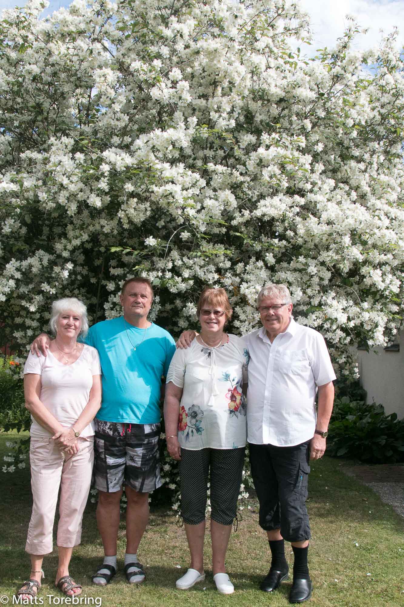 Jasminträdet bakom oss var helt enormt översållat med blommor. Alla sa, Oj vad det doftar gott, men jag känner ingen doft alls, på grund av att jag förlorat mitt luktsinne. Man lär sig leva med detta, är inget värre, så gör det ingenting.
