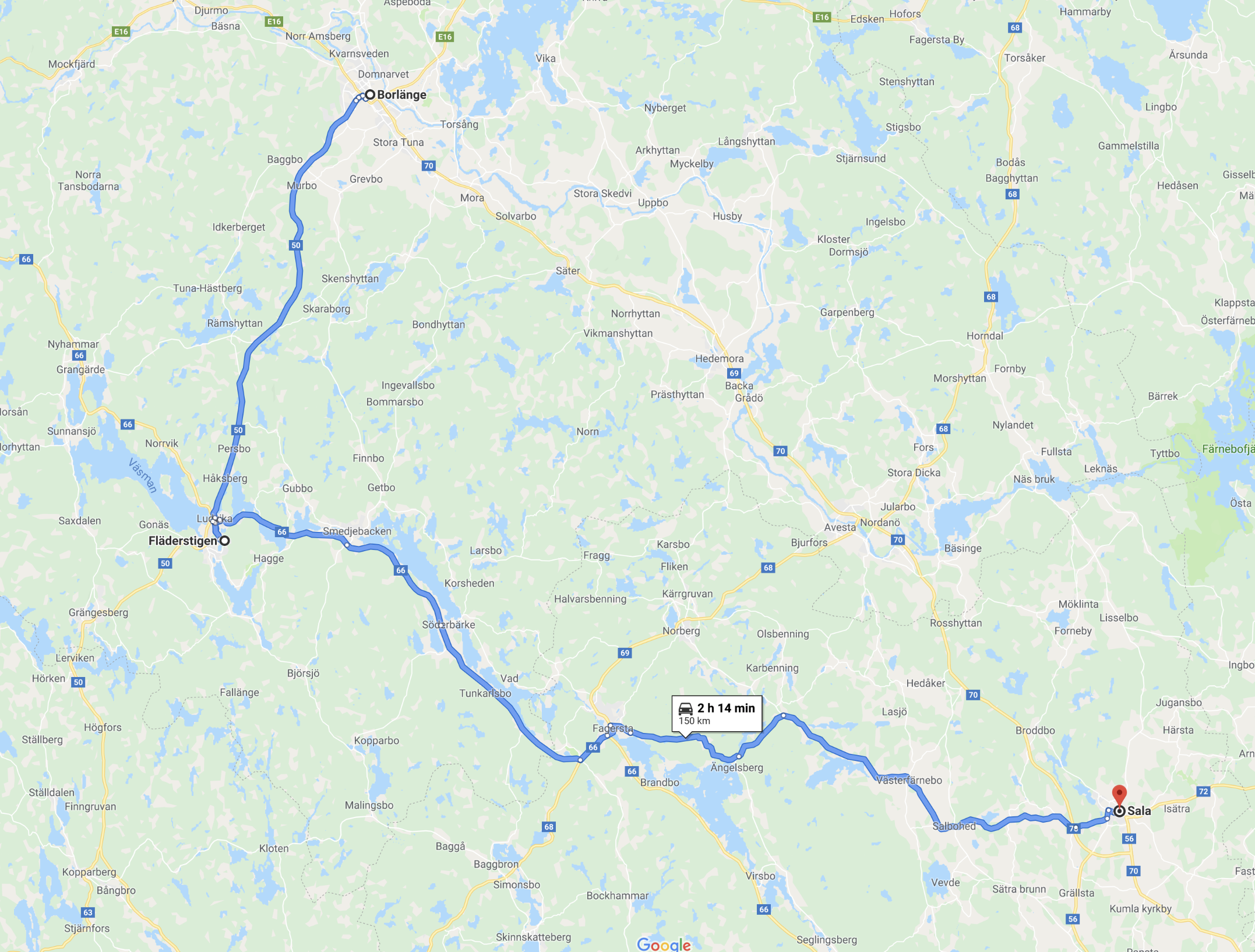 Vi styrde till den nya ställplatsen på Musiegatan i Sala. Vi vände för det såg trångt ut vid första anblicken. Vi körde vidare till Sala Silvergruva, men där var ställplatsen ockuperad av någon slags marknad. Vi hade fått stå på parkeringen, men det var inte heller roligt. Vi körde till en rastplats utanför stan, men det var fullt och trångt. Sedan körde vi till Caravan Campingen, men den var också ”fullsatt”. Då åkte vi tillbaka hit till Stadsparken. Den platsen var ju Busbra trots allt.