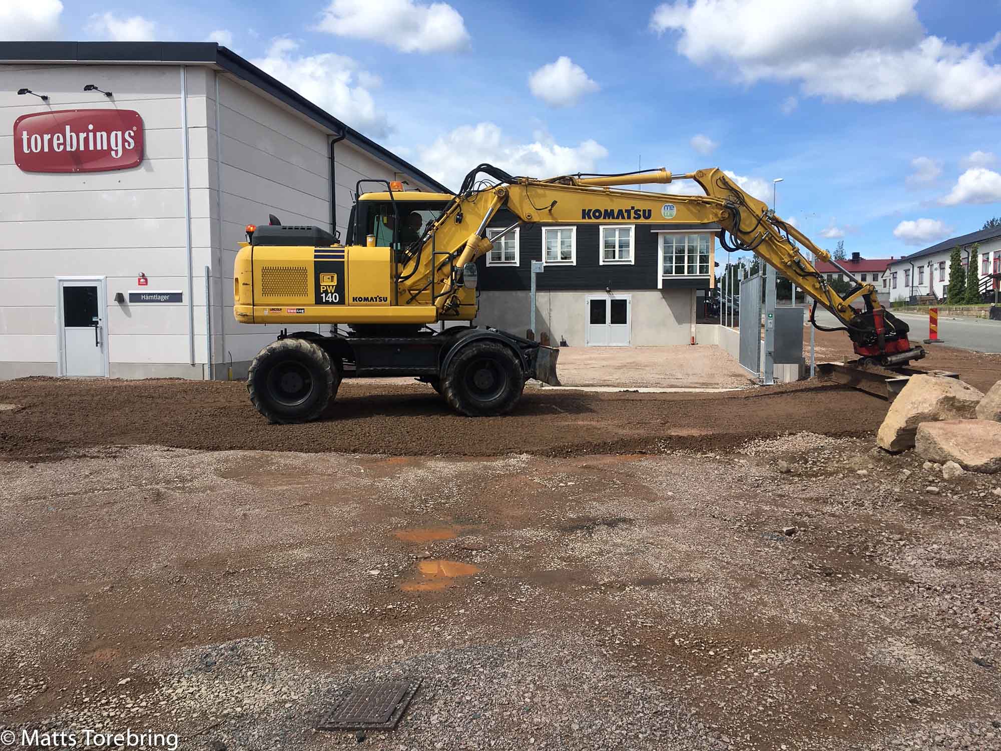 Sedan länge har det varit planerat, att under denna veckan, lägga asfalt runt hela vårt stora nybygge på Torebrings. Det är ingen liten yta att göra klar. I dag har fyra, fem olika maskiner och lastbilar arbetat samtidigt. Detta blir planen för ankommande gods.