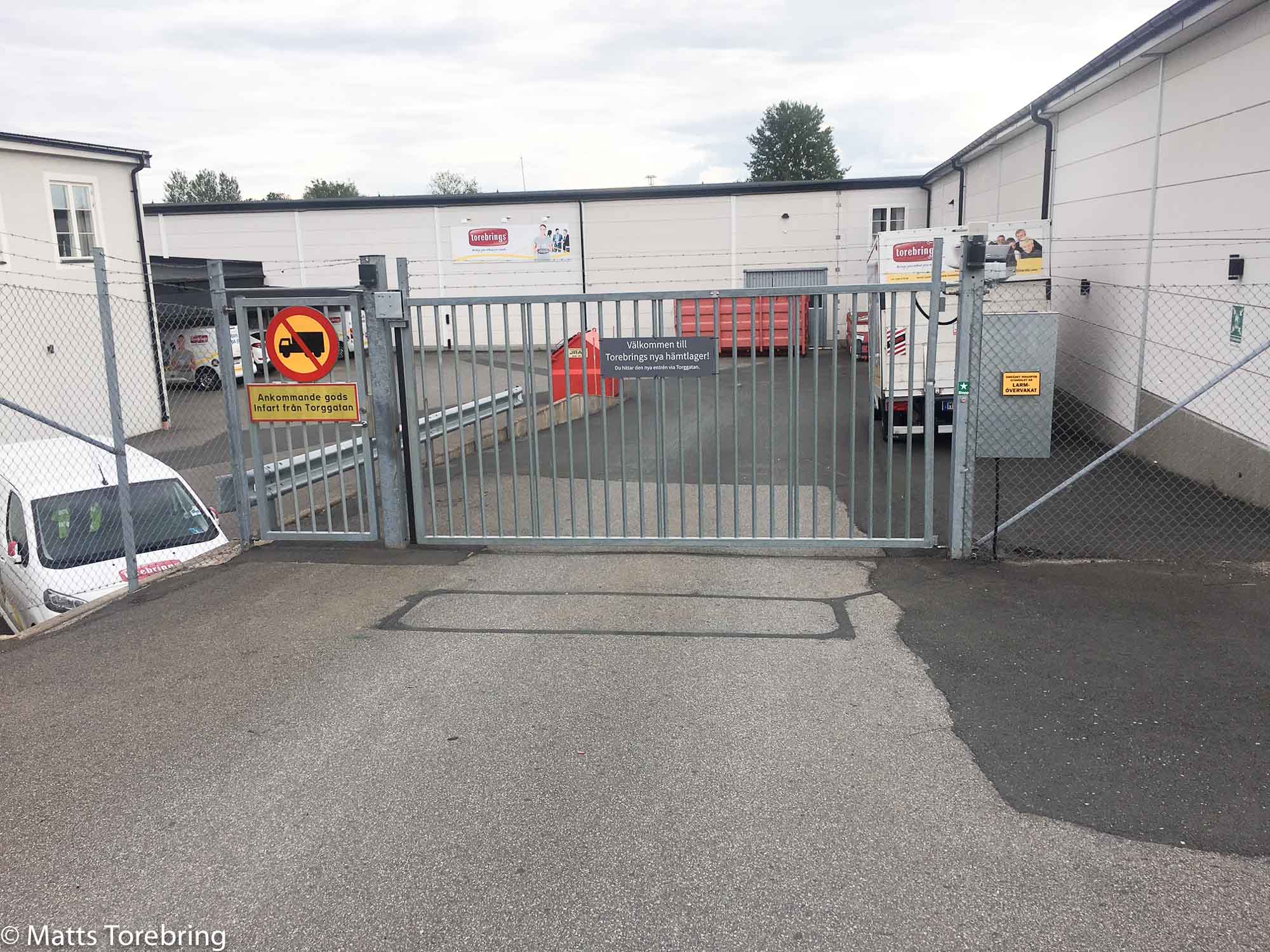 Här är infart för åtta stycken av våra servicebilar. Till hösten ska vi bygga tak till dem utefter långsidan. Några får vara kvar under taket, på andra sidan huset. Dörren på hörnet är till för alla, som vill hämta sina beställningar eller komma in och handla av oss. Utmed Stigbergsvägen, blir det mist ett tio- tal nya parkeringsplatser.