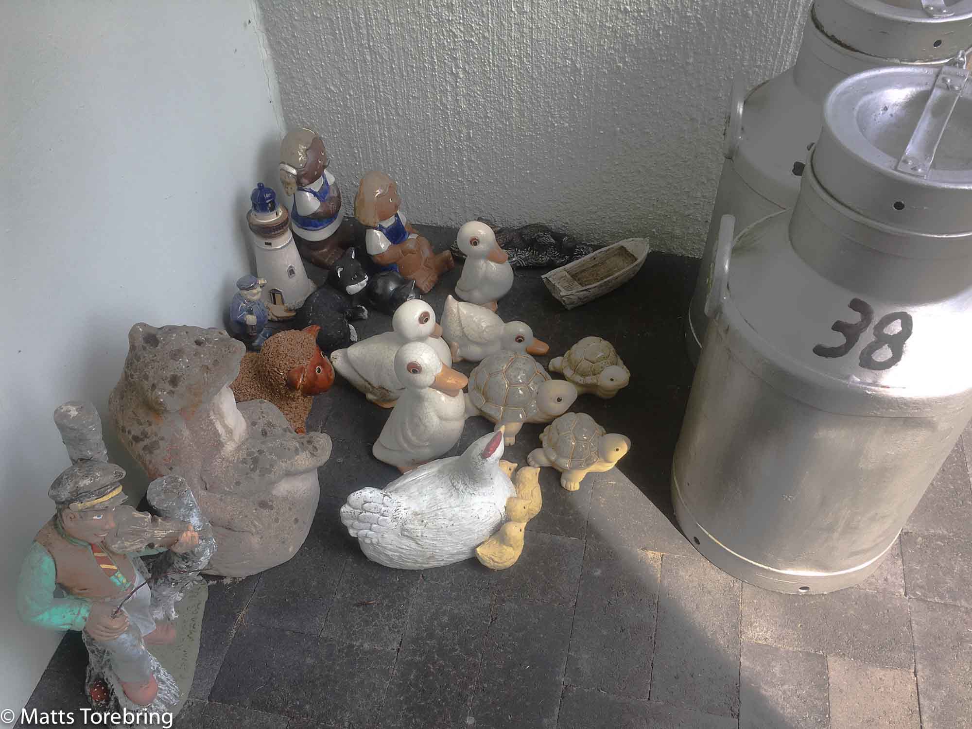 Nu har jag samlat i ihop de flesta, av mina trädgårdsdjur, resten vill de nya ägarna ha kvar. En del djur har gått till slakt, på grund av tidens tand. Mjölkasåarna behöver jag till mitt nya ”mjölkrum”. Jag ska ju bygga en ”lagård med mjölkrum” och om det passar in, bygger jag upp ett nytt mjölkabord.