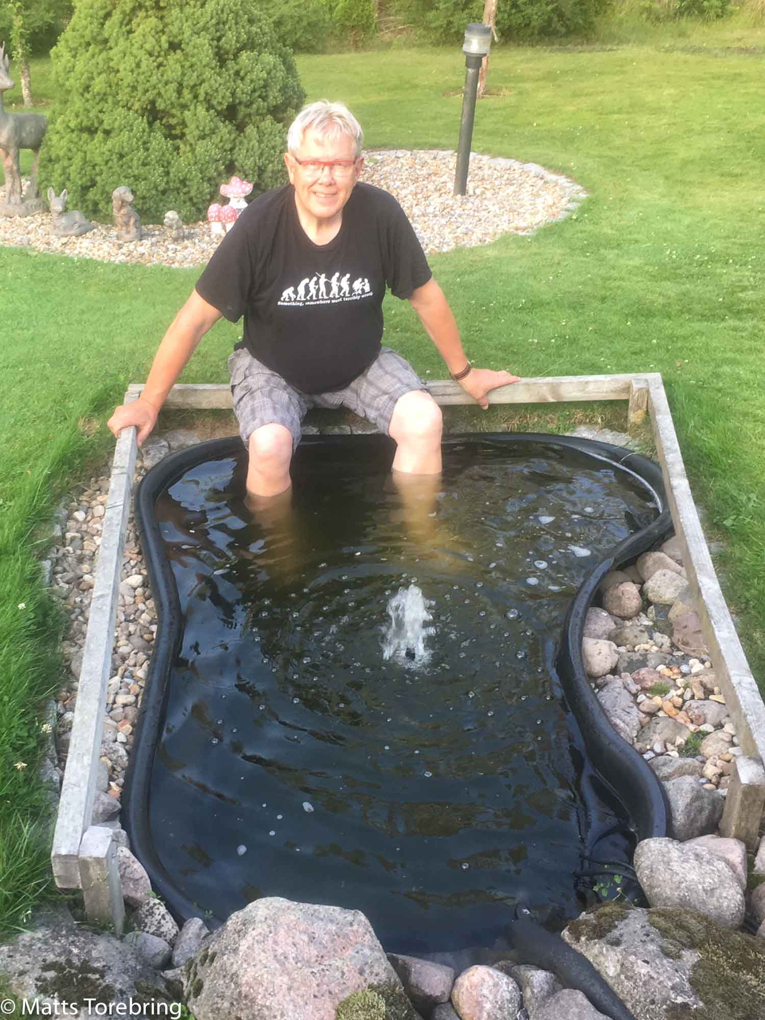 Ps. jag måste ha ett räcke runt dammen, så inte Fino förivrar sig och dränker sig. Det var en tillfällig lösning, som blivit kvar permanent.