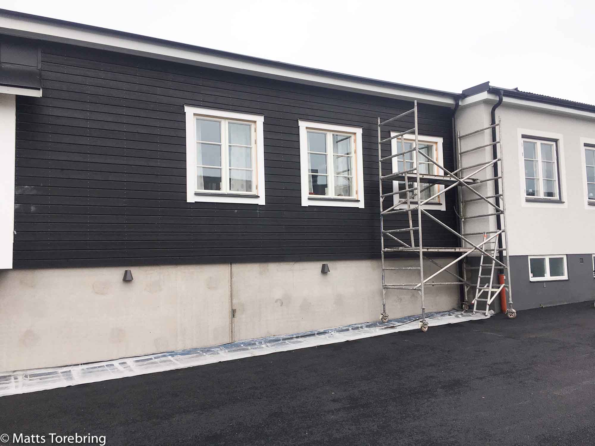 Jag var ute på på morgonen och hälsade Lasse målare välkommen åter till bygget. Lasse har en strykning kvar utvändigt på kontoret.