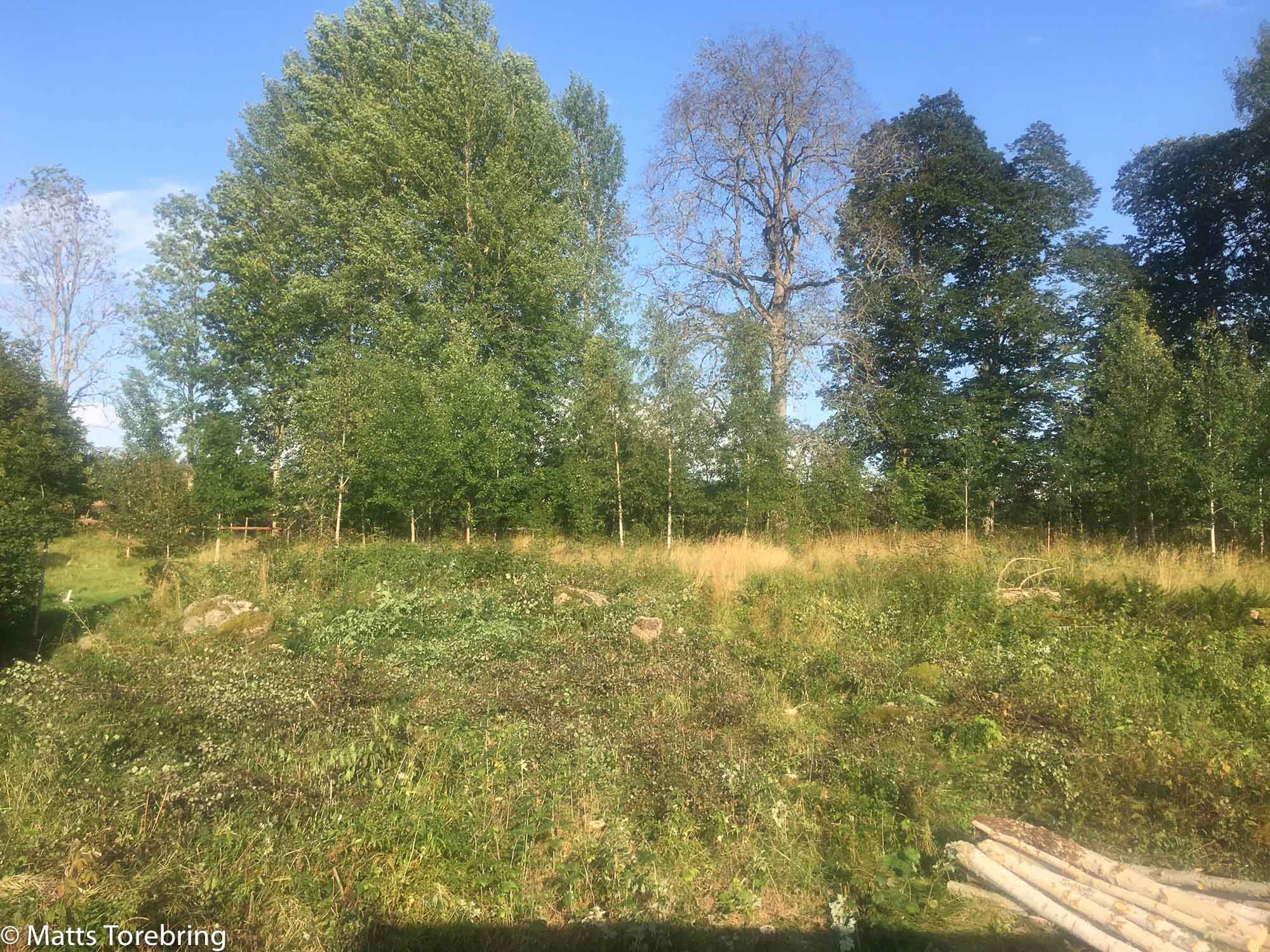 Nu startade motorsågen ikväll och jag kunde avverka det sista av alla träd, längst upp i sydöstra hörnet av vår tomt. Alla tre meters längder är blytunga, när det är över 30 meter att bära, genom ett oländigt stenröse fyllt med meterhöga brännässlor. Först bar jag den grövsta stocken ännu längre bort. Så satte jag mig ned och tittade på den, här ska du inte vara, du ska ned i den andra vedhögen. Så blev det också. Min timmersax låg kvar hemma.