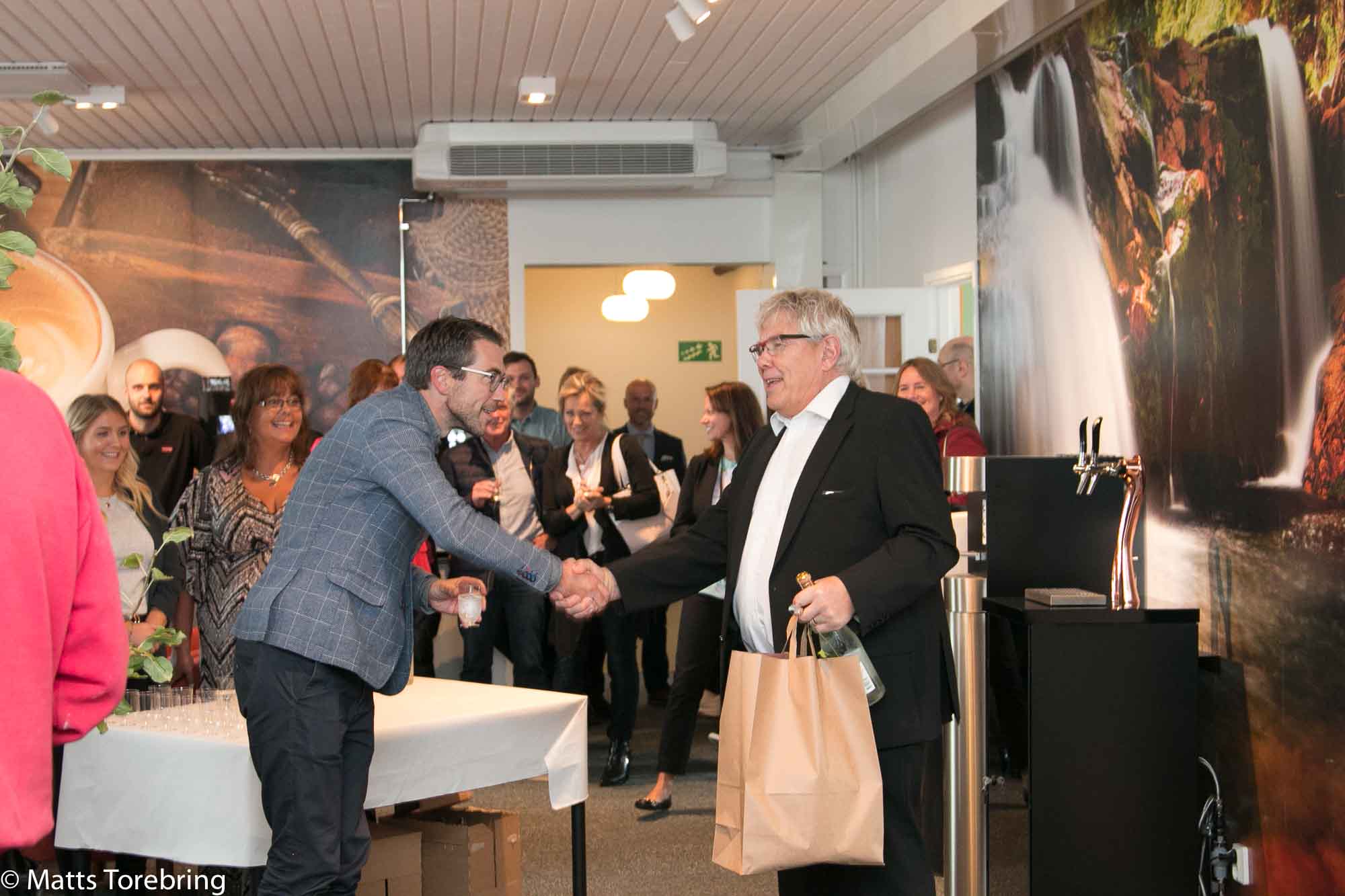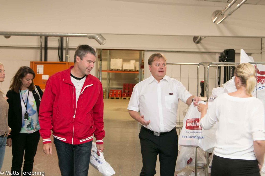 Niklas delar ut Goodibag till Gert Dahman Midroc och till alla de andra innan de går hem. Foto Henric Ahnstedt
