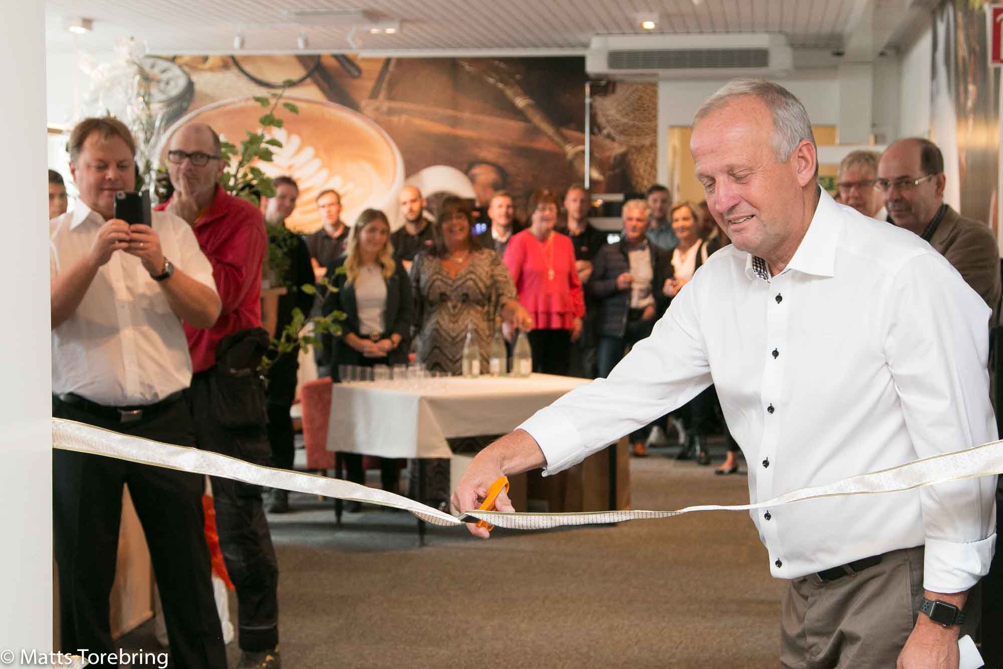 … Stefan klipper bandet och inviger nya lokalerna. Foto Henric Ahnstedt