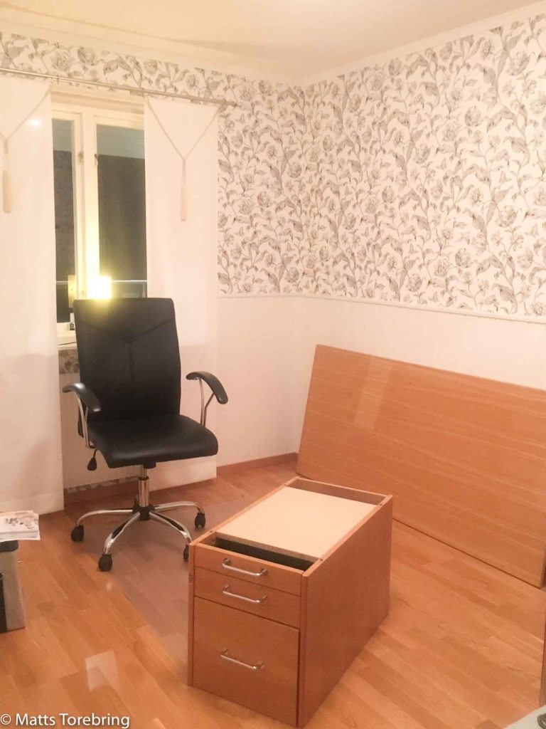 Det började på nyåret på jobbet, med att flytta alla kontorsmöbler fram och åter, allt eftersom hantverkarnas framsteg. Hur många gånger vi flyttade och bar på alla kontorsmöbler, det vet jag inte. Först var de i vägen för elektrikerna, sedan snickarna, målarmästaren och sist mattläggare.