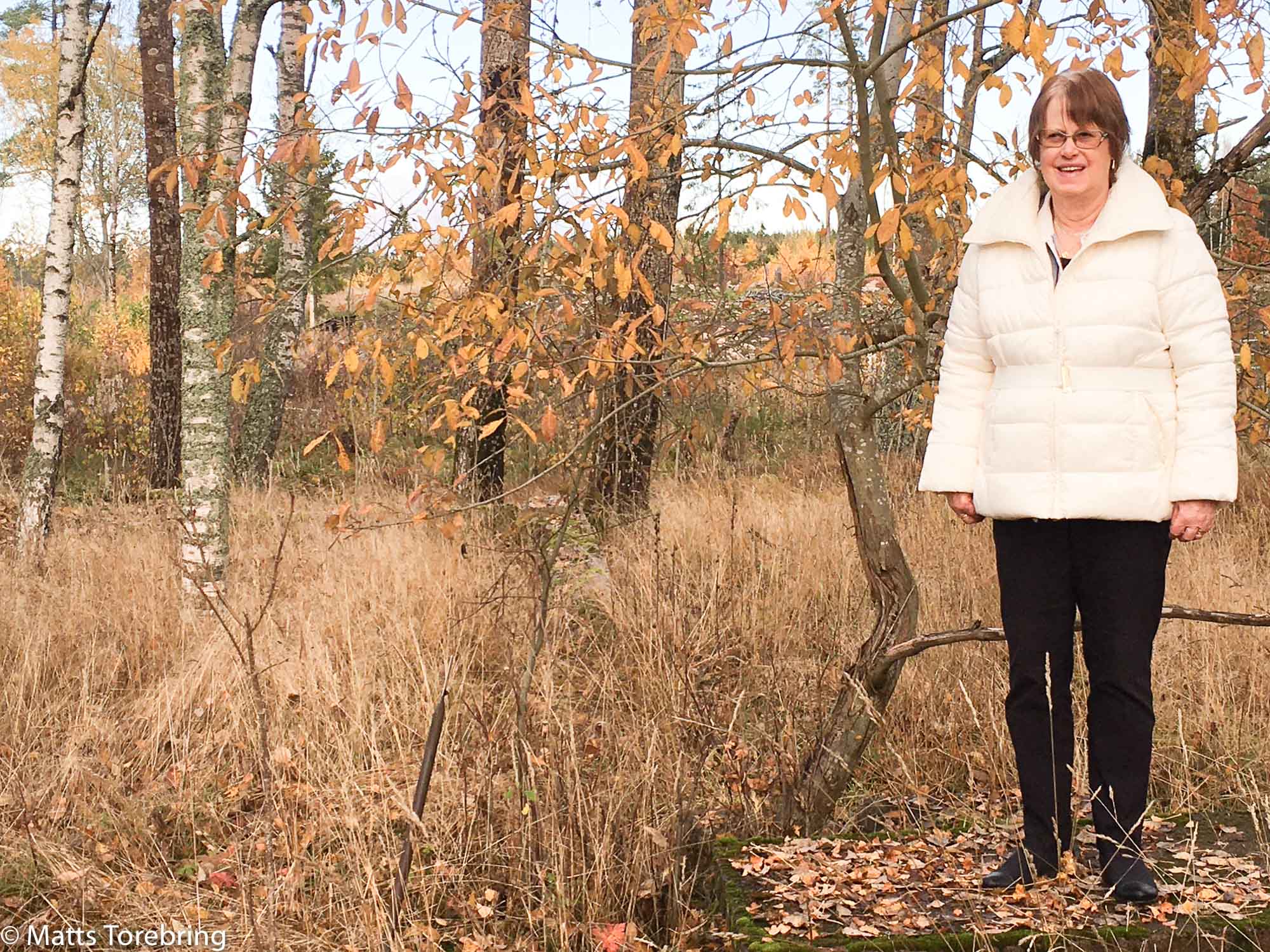 Birgitta står på trappan till kapellet Betania Vallstorp.