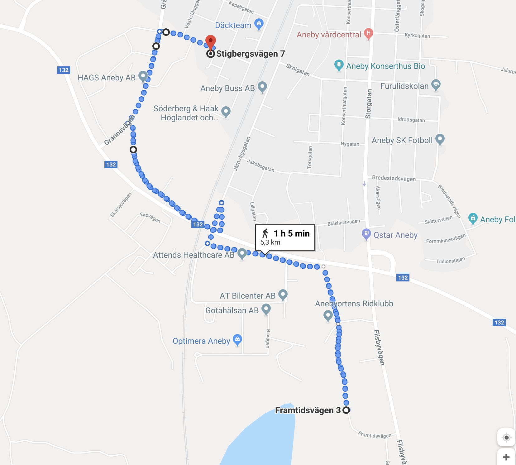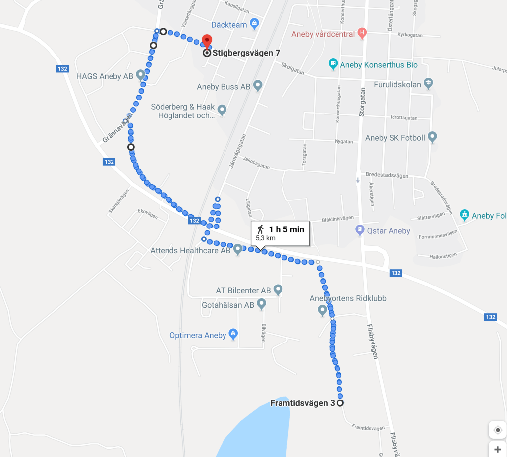 Före det att gång- & cykekelbanan kom till, har jag undvikit att gå Grännavägen. Det är mörkt och praktiskt taget ingen, håller hastigheten. Nu har vi en jättefin gång- & cykelbana ända hem till köksdörren och från jobbet. På väg hem passerar jag utanför vår störste arbetsgivare i kommunen, Attends. Det tog knappt en timma att gå, helt otränad.