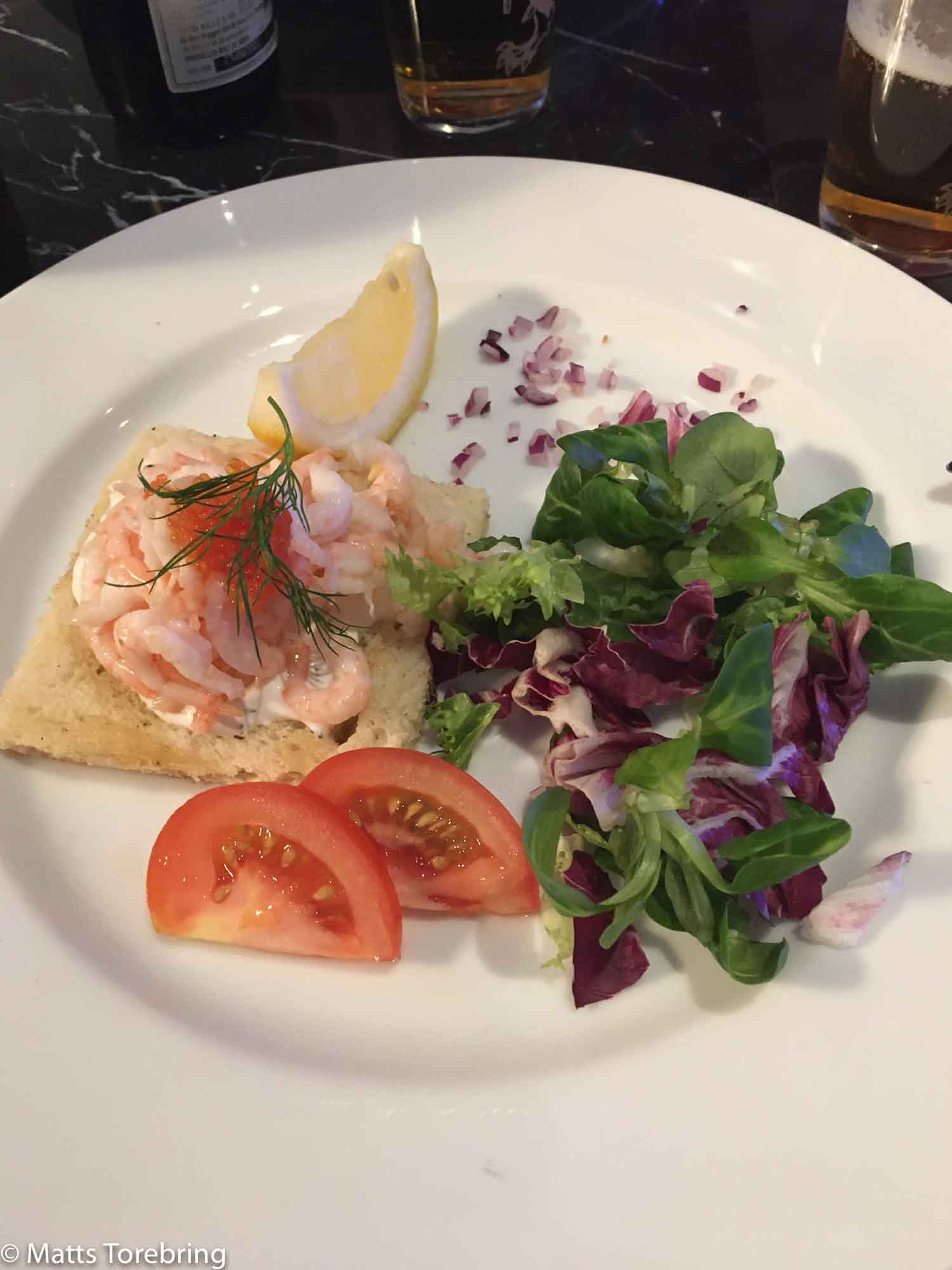 Vi tog deras erbjudande om en tre rätters meny. Handskalade smakfulla räkor, det var helt enkelt ovanligt gott.