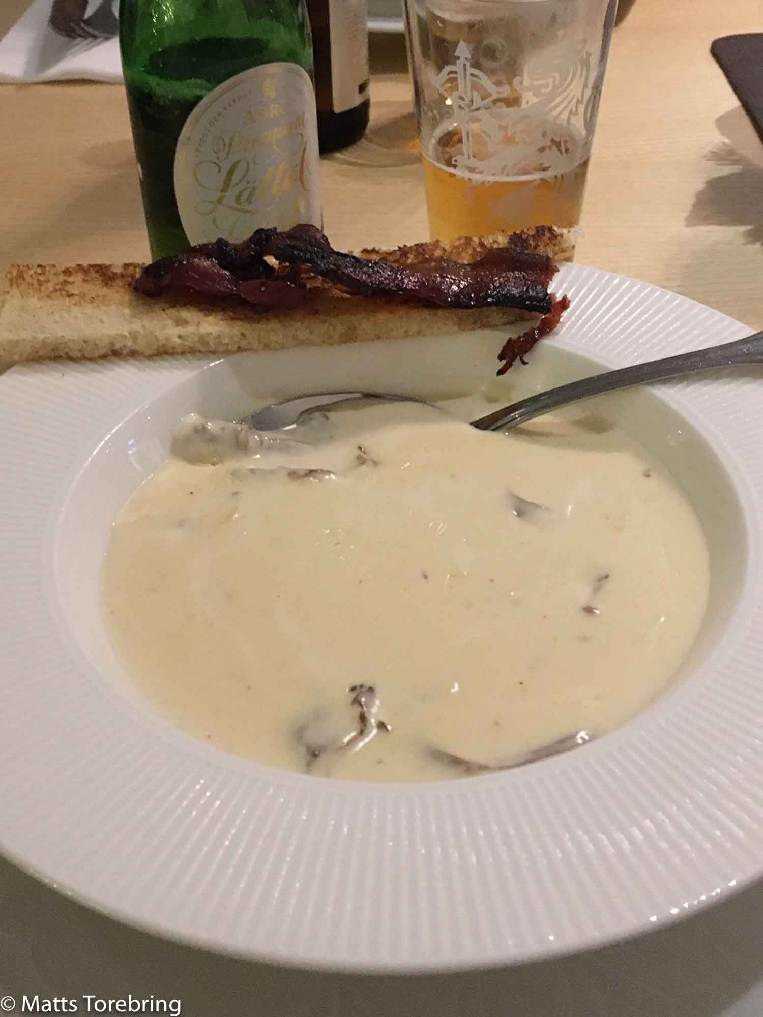 Behöver jag skriva att kantarellsoppan var god. Lite nytt med rostat bröd med bacon till. Före soppan hade vi dessutom avnjutit ett stort salladsbord.