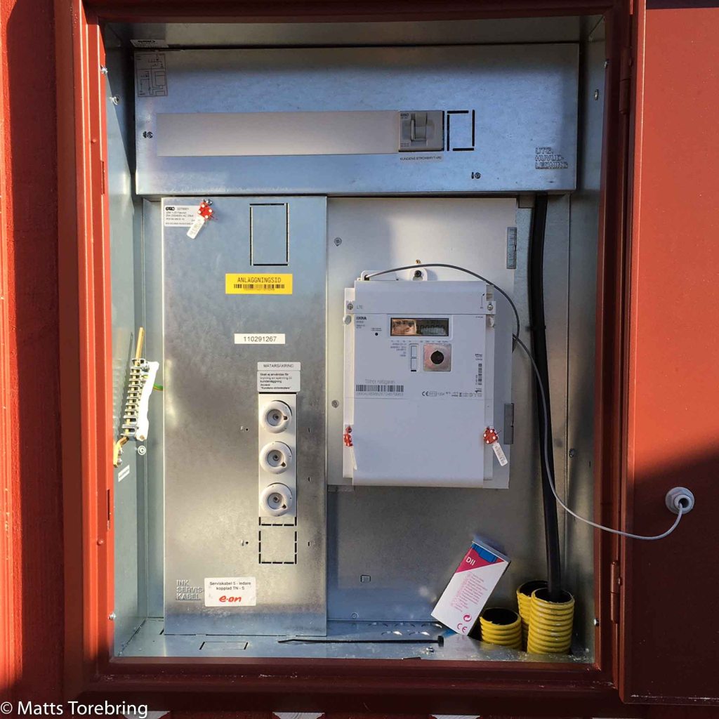 Sedan i oktober månad har vi haft kablar liggandes i gruset över Framtidsvägen. Jag har chansat på, att det inte kommer en snöplog och kör sönder dem. Det har gått bra och nu är kablarna borta. Den grova elkabeln kom i dagen när jag avverkade skogen på vår tomt. Vi har haft inkopplad byggström på fel sida om Framtidsvägen. Som jag har väntat på E-on, idag kom de. Nu är kabeln inkopplad.