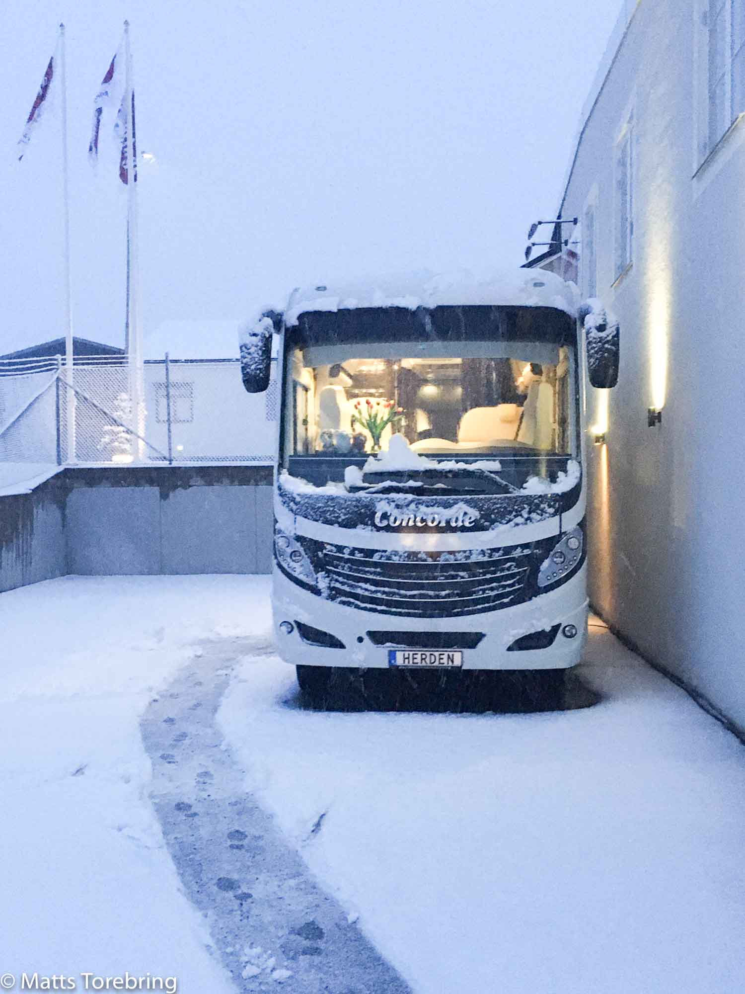 Nu måste vi åka till Kosta Outlet till helgen tänkte jag och koppla av lite. Jag behöver handla lite snygg kläder till jobbet. Inget är naturligare än att ta husbussen. Men jag kan ju inte ha vädret på min sida varje gång. I vinter har jag inte lagt på vinterdäcken, men det hade säkert gått bra ändå. Men nej tack, det får vara med tanke på allt salt. Herden får vara hemma.