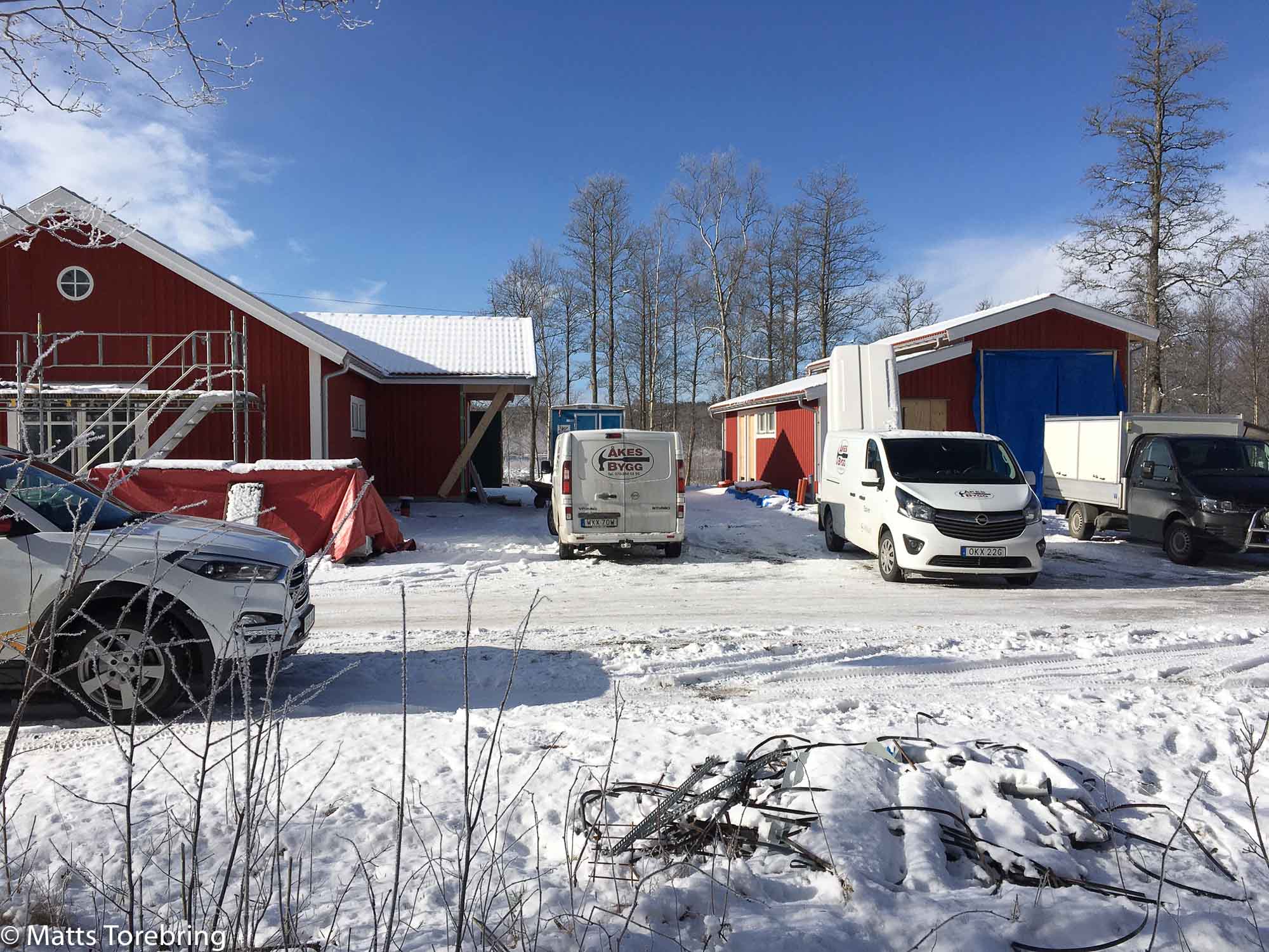 Större delen av denna veckan, har jag haft fyra snabba och duktiga snickare. Idag blev vi fem med mig. Oj, vad mycket som hänt. Det blir massor av städjobb och förarbete, som jag gör för snickarna. I morgon måste vi flytta två virkespake, ut från ladan in till garagen. Det har Birgitta lovat att hjälpa mig med. Vardagsrummet har jag kvar att städa också, det är extremt fullt av byggrester.