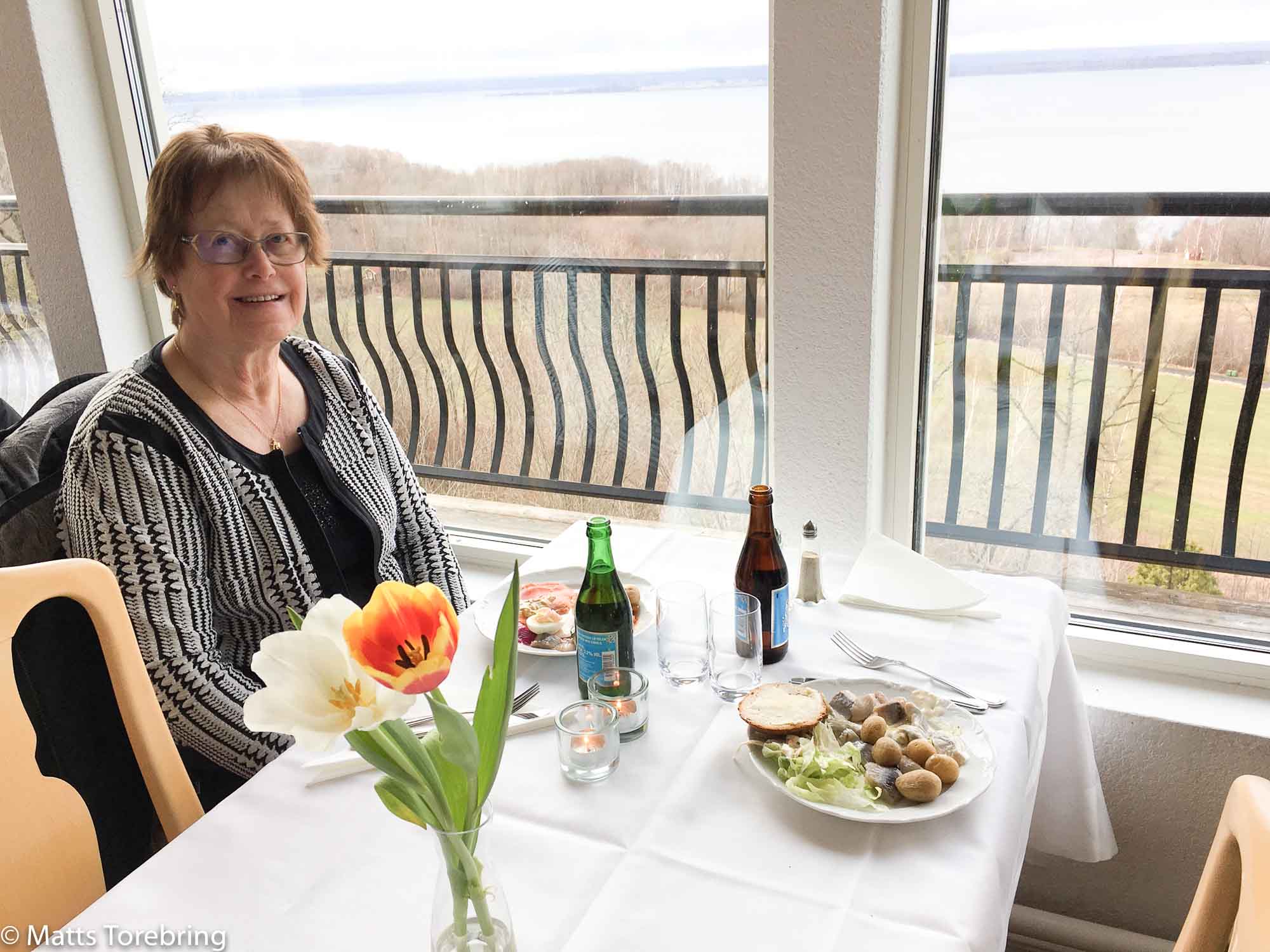 Så gott som varje vecka har vi åkt ut någonstans. Vi måste komma bort från jobbet lite. Idag åt vi en Slottsbuffé på Gyllene Uttern, Gränna. Själv har jag blockerat hela den första tallriken med sill & potatis. Vi har alltid fått fönsterbord och kan njuta av både mat och utsikt.