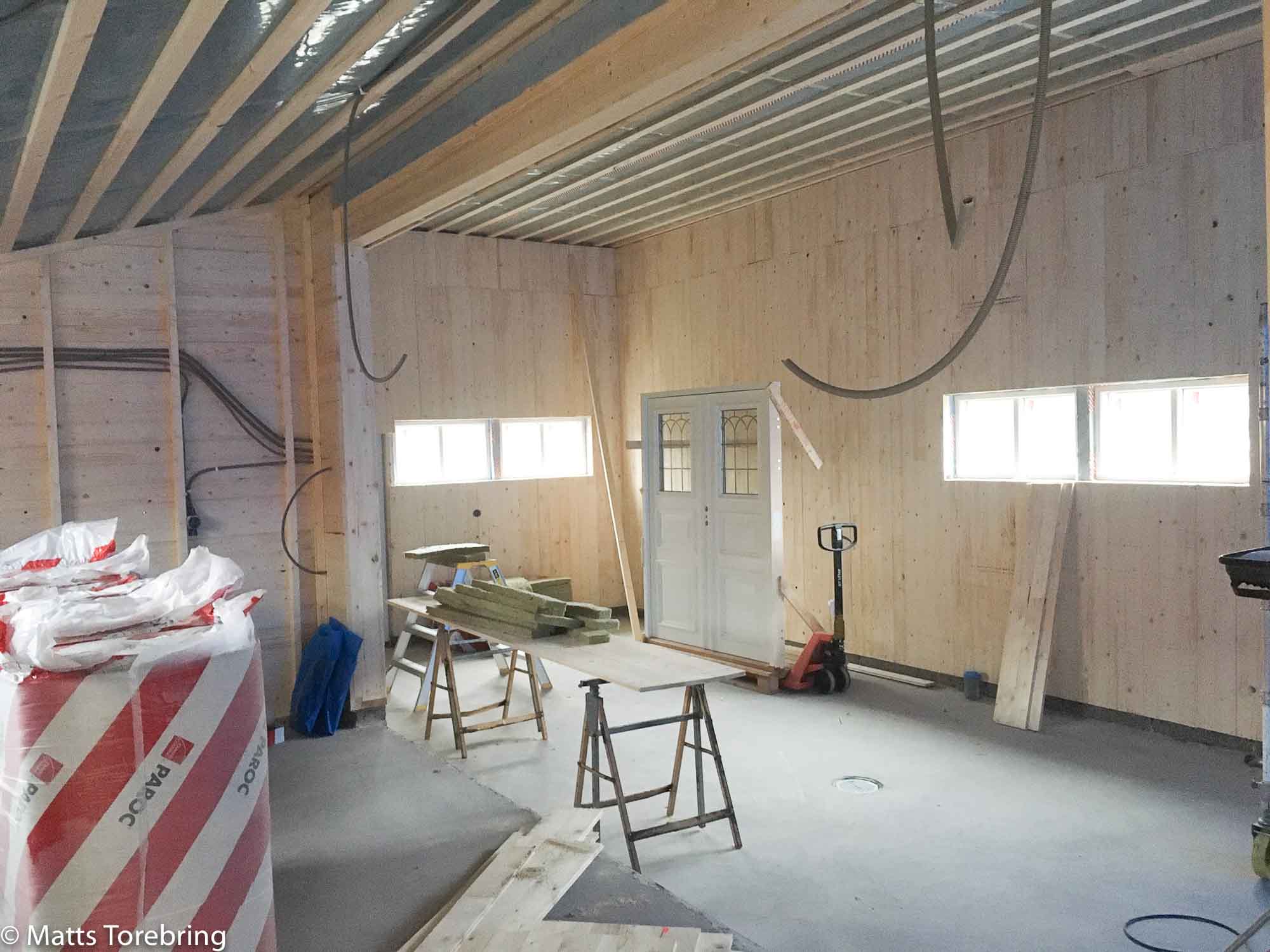 Ja visst har det gått framåt. Två snickare har varit heltid i garagen, två snickare inne i ladan, två elektriker både i ladan och inne, samt två rörmokare ett par dagar. Nu början jag faktiskt att fuskräkna framåt. När kan vi flytta in? En riktigt fin helg till dig och din familj önskar Birgitta & jag.