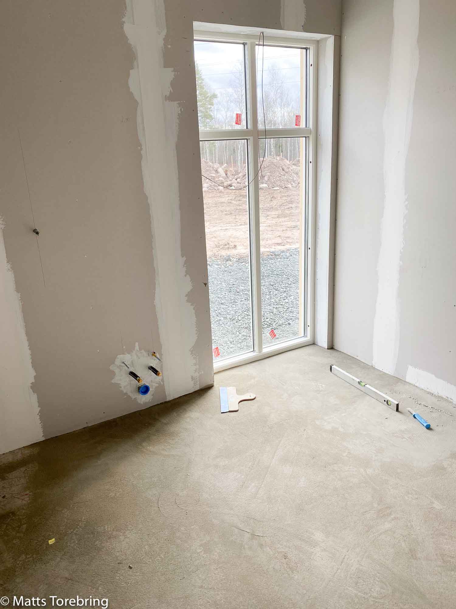 Golvet är flytspacklat i Birgittas & mitt badrum