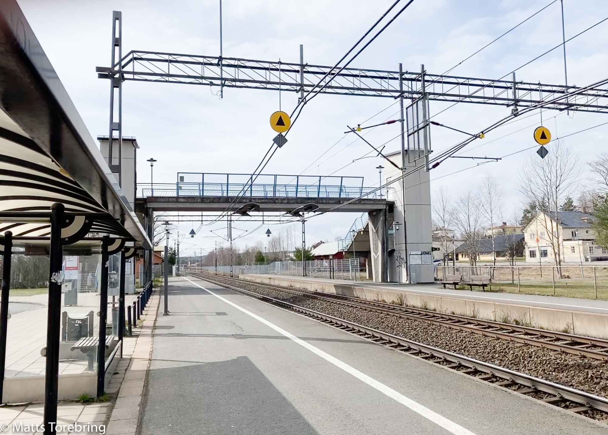 Vad ska vi göra idag? frågade Birgitta. Jag ska ta med dig på en promenad, som du aldrig gått tidigare, svarade jag. Vi började vid järnvägsövergången till stambanan. Nya, moderna hissar upp till övergången, men ack så nedklottrade. Dessa har vi aldrig prövat. Det är ingen sport att åka hiss, jag tar alltid trapporna utom idag, då provade vi hissen upp & ned för första gången.