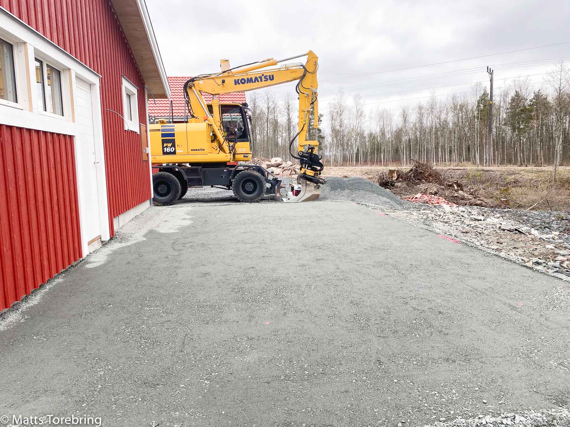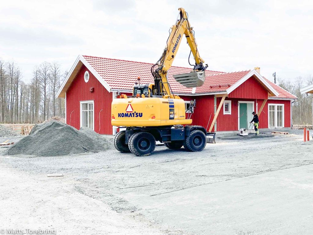 Jag har delat upp markentreprenaden i etapp 1 och etapp 2. Etapp 1 innebär tre altaner och gång- & körvägar. Etapp 2 tar jag till hösten. Då lägger vi ut matjord och sår gräsmatta samt planterar gränsväxter. Nu gör vi underarbetet för platsgjuten betong.