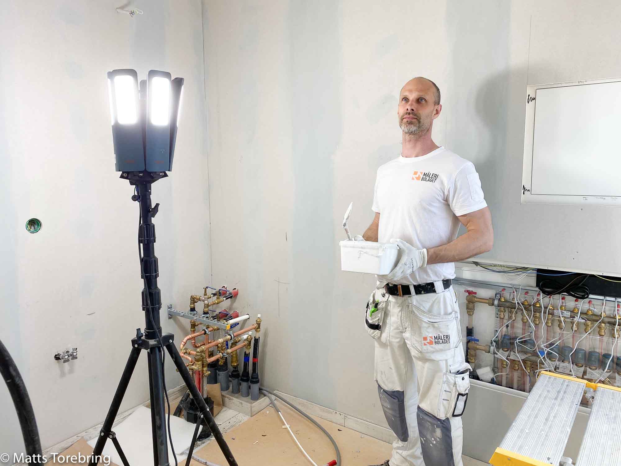 Stefan Landers, Måleribolaget, funderar över rätt färgval i tvättstugan