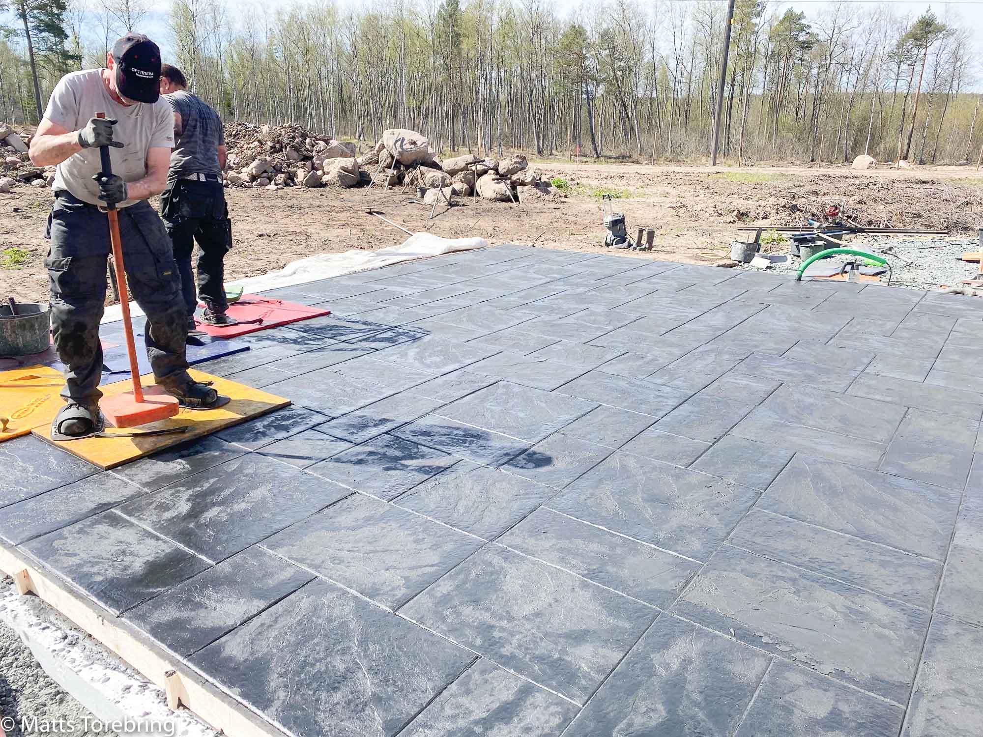 Här trampas mönstret ned i betongen efter en stund.