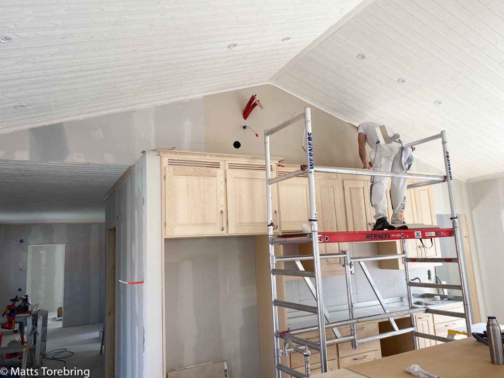 Det går som på räls! Man måste berömma målarna som måste komma åt i alla hörn. Det är ju inge lätt uppgift alla gånger.
