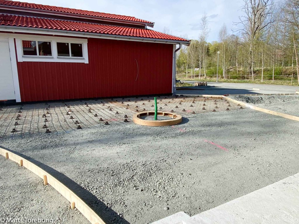 Vi var i Hyssna på fukttest av husbussen under fredagen. Jag blev lite orolig för, hur skall vi få in alla klinkers i huset, när det läggs armeringsnät och gjuts, ända fram till dörren. Jag försökte få hjälp, men ingen hade tid. Vi avbröt resan efter en dag och körde hem.