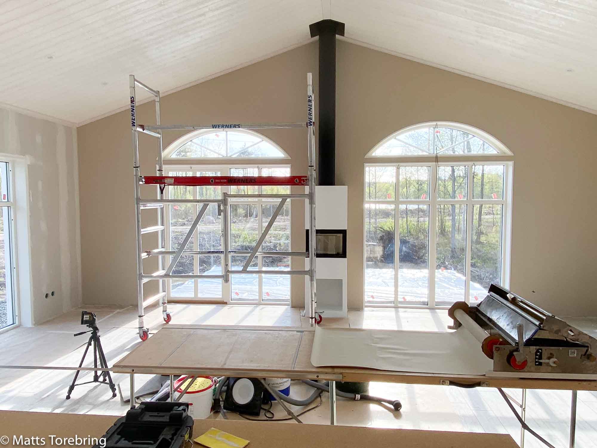 Det går inte att se denna ”stråtapet” ensam, den måste få flyta samman med ådringarna i golvet och våra möbler. Stefan Landers, vår Målarmästare från Måleribolaget Tranås, är mycket duktig och noggrann.