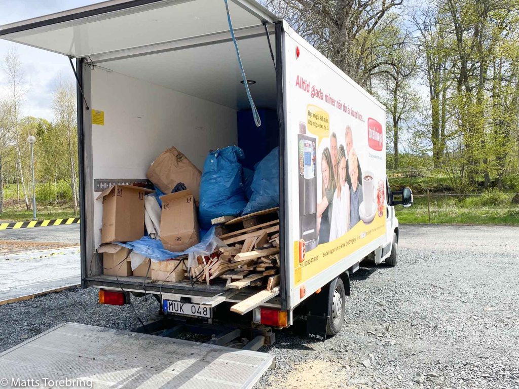 Jag har tagit på min lott, att städa och hålla rent på på bygget. Det är nästan en gåta, hur mycket skräp det blir, på en byggarbetsplats. Skönt att ha en lämplig bil, att transportera allt med. Bättre än en släpkärra. På jobbet har vi återvinning på allt, så det är enkelt.