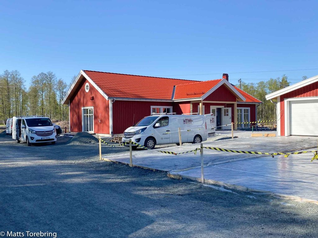 När jag kom ned till bygget idag vid åtta tiden, möttes jag av hela 8 hantverksbilar. Fantastiskt, att alla tog mig på orden och ser allvaret i att bli klara i tid.