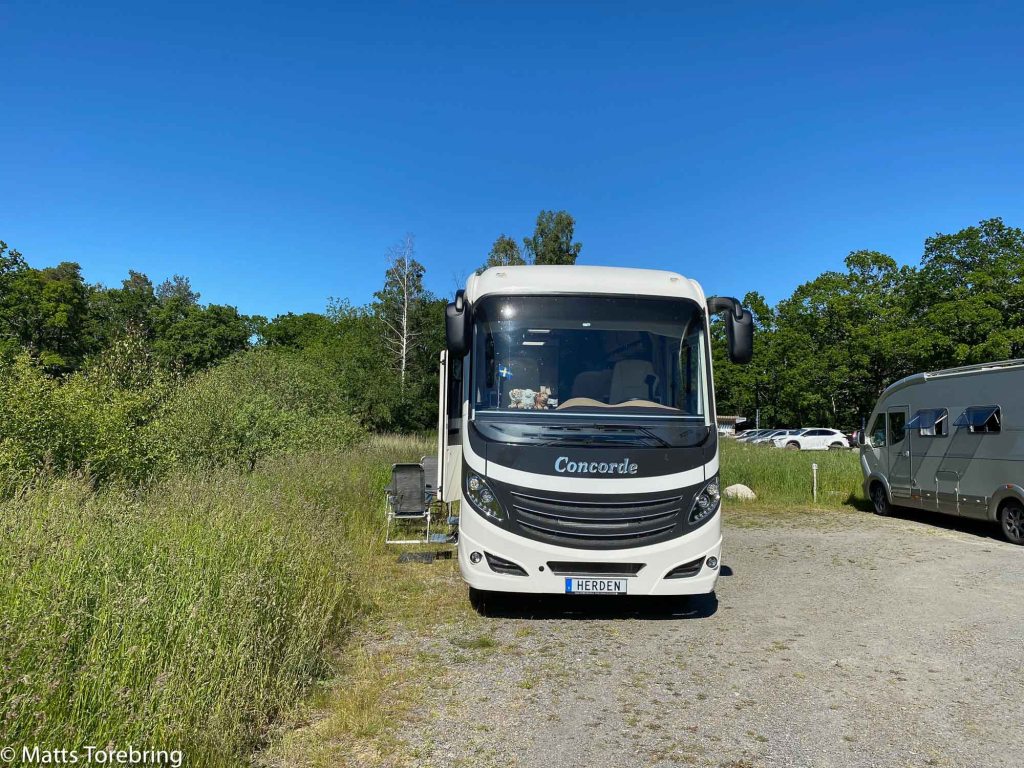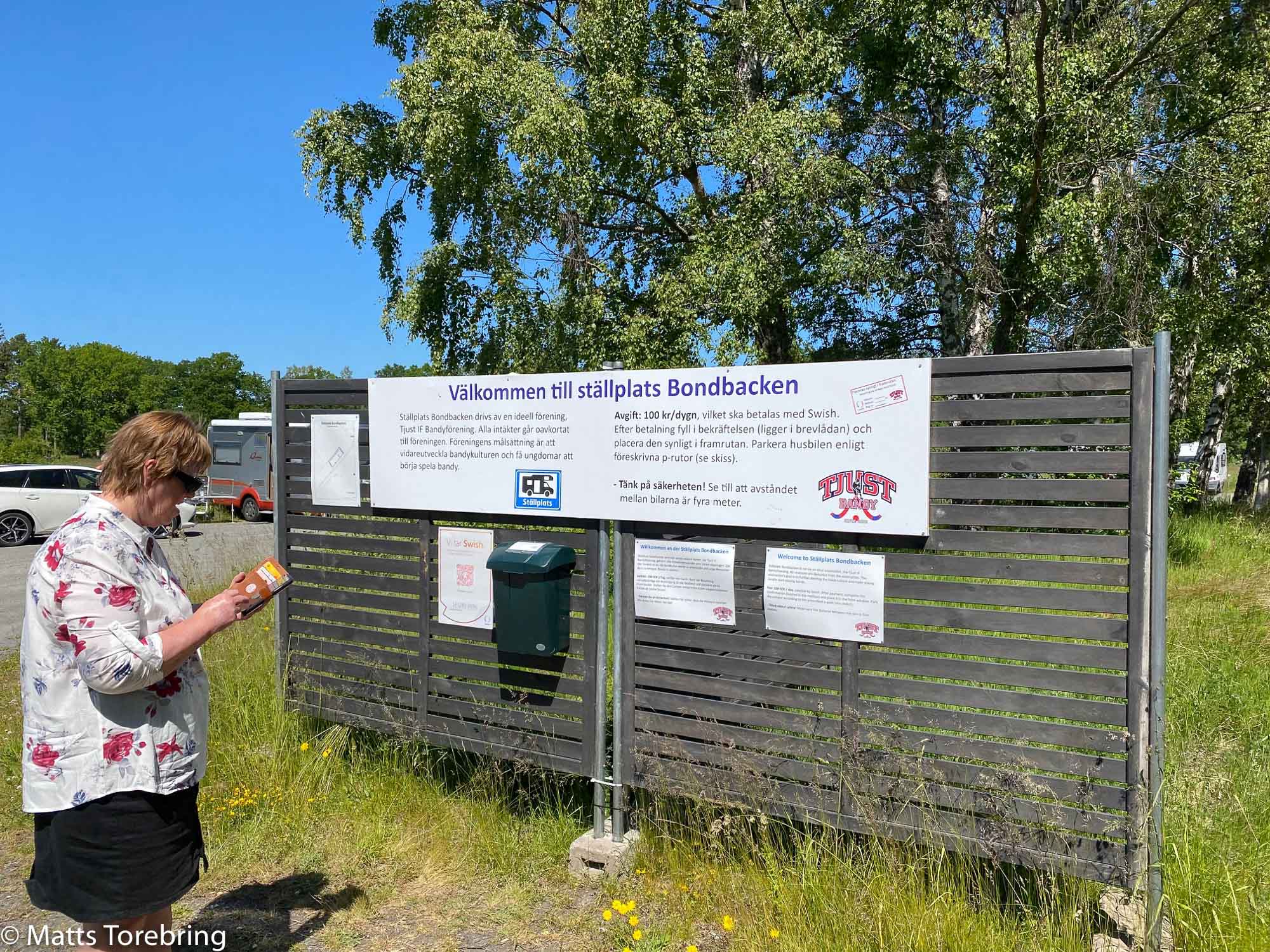 Ställplats Sågen, på andra sidan viken är bra. Här var det nu ännu bättre, när det finns lite mera än bara en P-ruta. Pris 100:-/ 24 timmar.