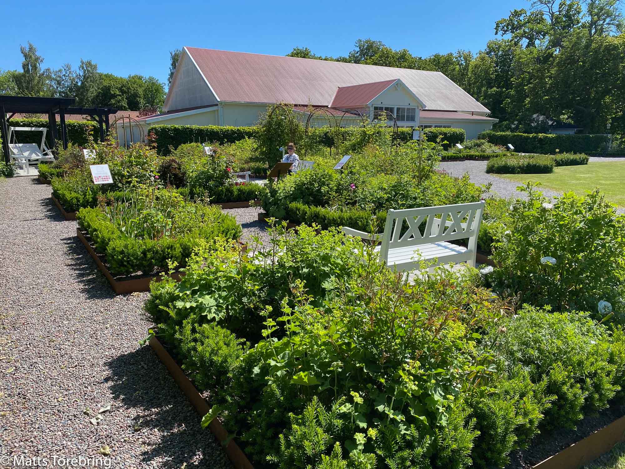 Mängder av rosor stod i knopp, tänk att komma tillbaka och se dem blomma. Så underbart vackert planlagt och med namn på alla växter.