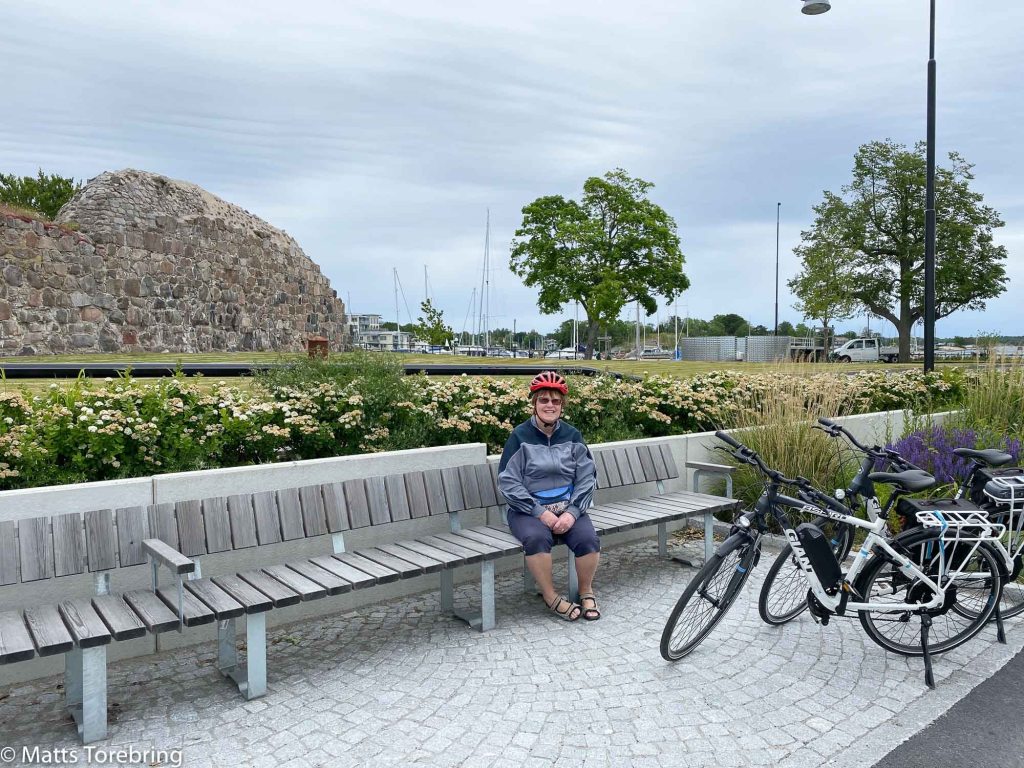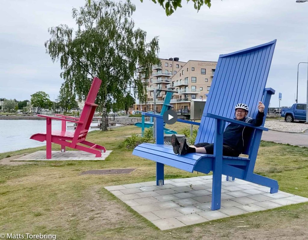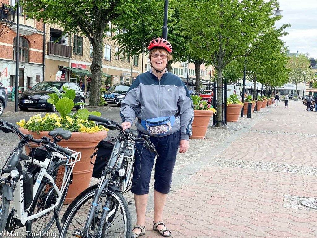 Cykelbanan från Gränsö in till stan är exemplarisk. Inne i stadstrafiken, gillar Birgitta inte att cykla. Hon satte sig på en soffa, när jag letade upp Jem & Fix för att köpa en speciell skruv till våra solstolar. Jag hittade butiken och skruven också, ett bra stycke bort, uppe vid Östersjövägen.