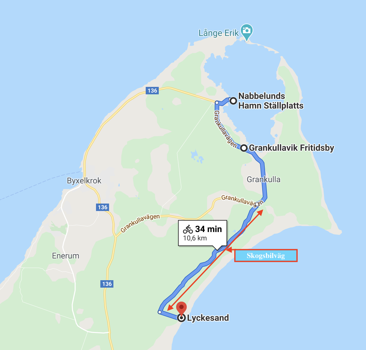 Gamla Grankullavikvägen har vi aldrig cyklat förr. Vi var rädda för punktering i det grova gruset, men det gick bra. Bättre än att cykla väg 136 i mycket trafik. Vilken fin skog vi cyklade igenom. Halva sträckan var den mest fantastiska cykelbanan.