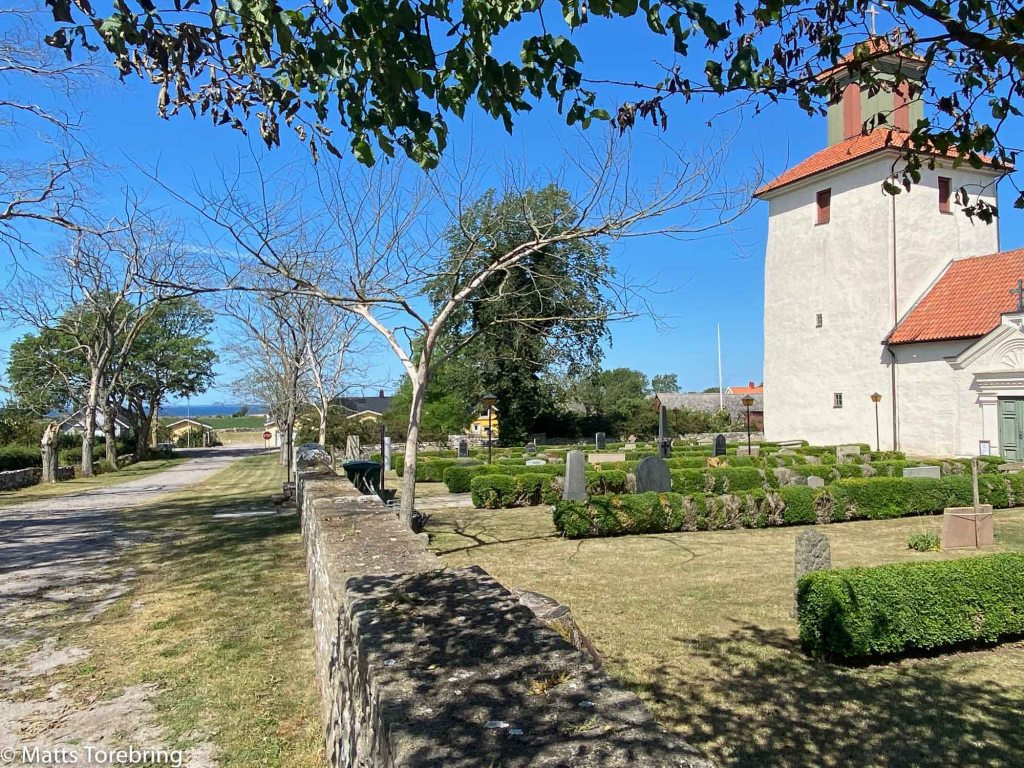 Ventlinge Kyrka och ställplats rakt fram mot havet.