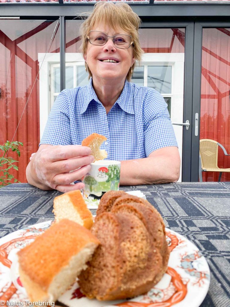 … Idag gör vi en kaffekorg och går ned till badviken, badar och fikar, +9 grader & regn, så nej tack. Birgitta började baka, det har hon inte gjort på tjugo år, säger hon. (sedan vi började åka husbil -99) Mjuk kaka och kall mjölk gillar jag. Skönt att vi är väder oberoende i vårt greenroom.