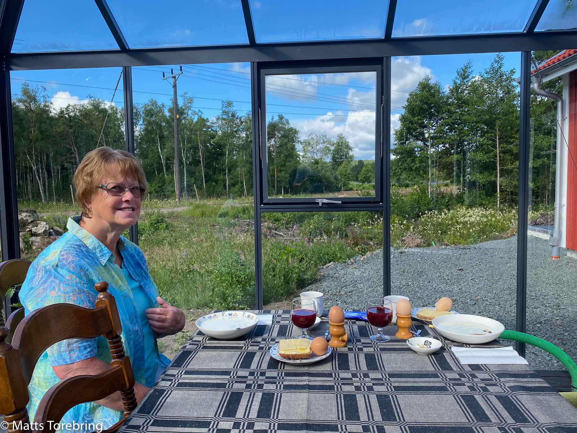 Vi gillar oxå ägg till frukost,vi brukar avnjuta det i vår inglasade altan!
