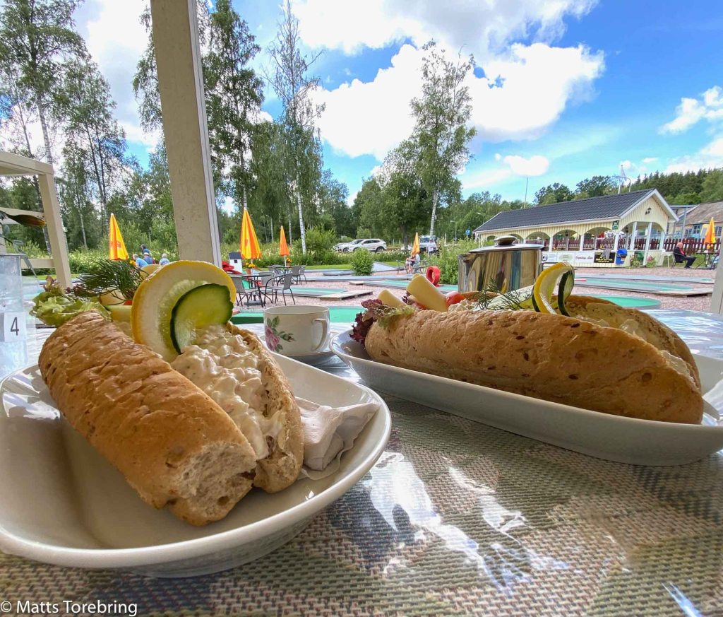 Vi åkte till Sveriges minsta Café, det så kallade ”Dasset i Linderås” (ligger strax utanför Tranås). Men Oj, det blev visst två frukost idag. Dessa baguetter var större än hos Tant Grön i Västervik. Vi får hoppa över middagen.