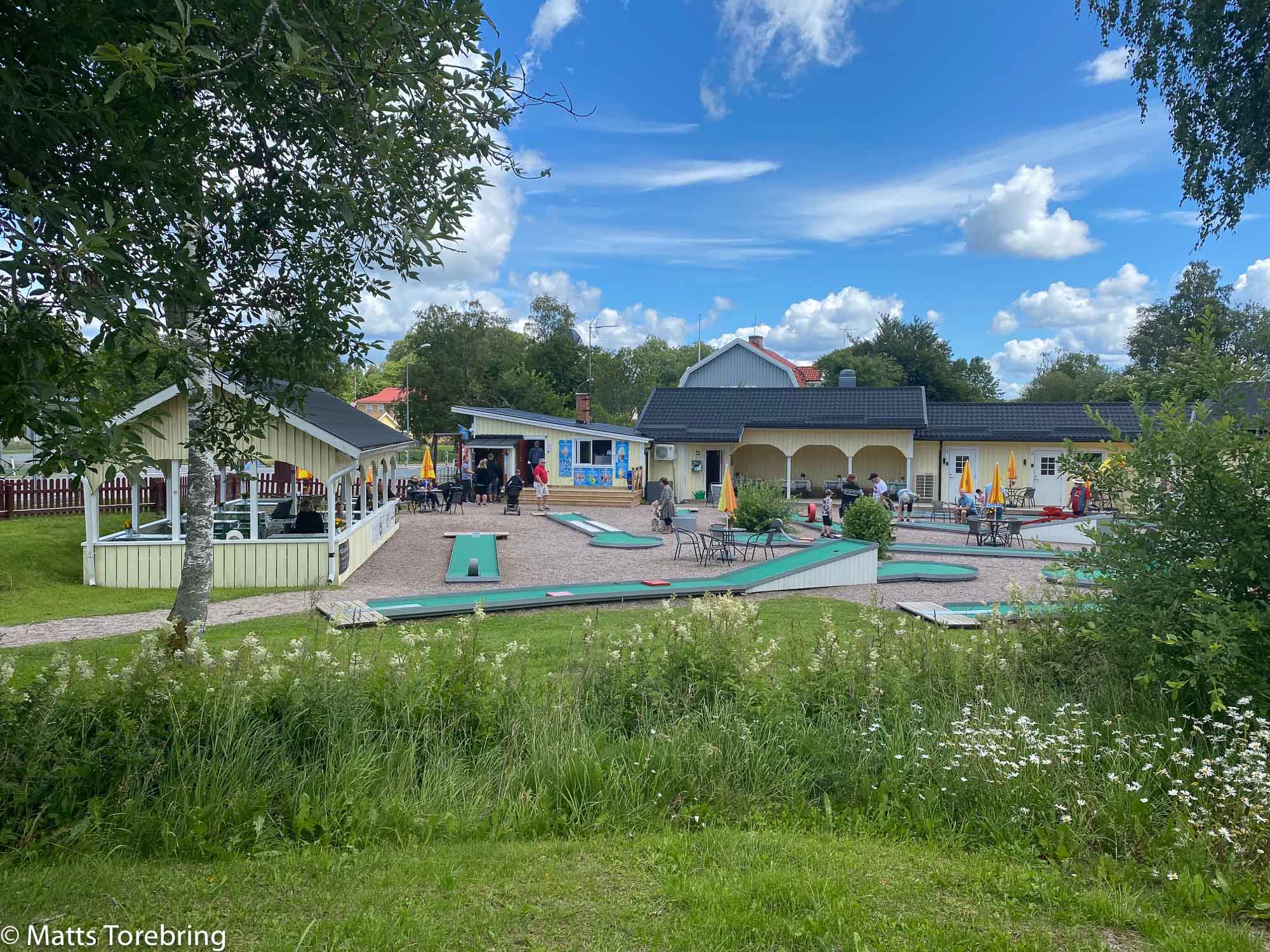 Det lilla huset rakt fram i bild med snedtak är det ursprungliga ”Café Dasset”. Denna verksamhet startade 1948. Jag minns det väl när jag var yngre på 60- talet och körde ofta förbi där. Idag finns B&B och minigolf. Efter bara ett besök kan jag rekommendera detta.