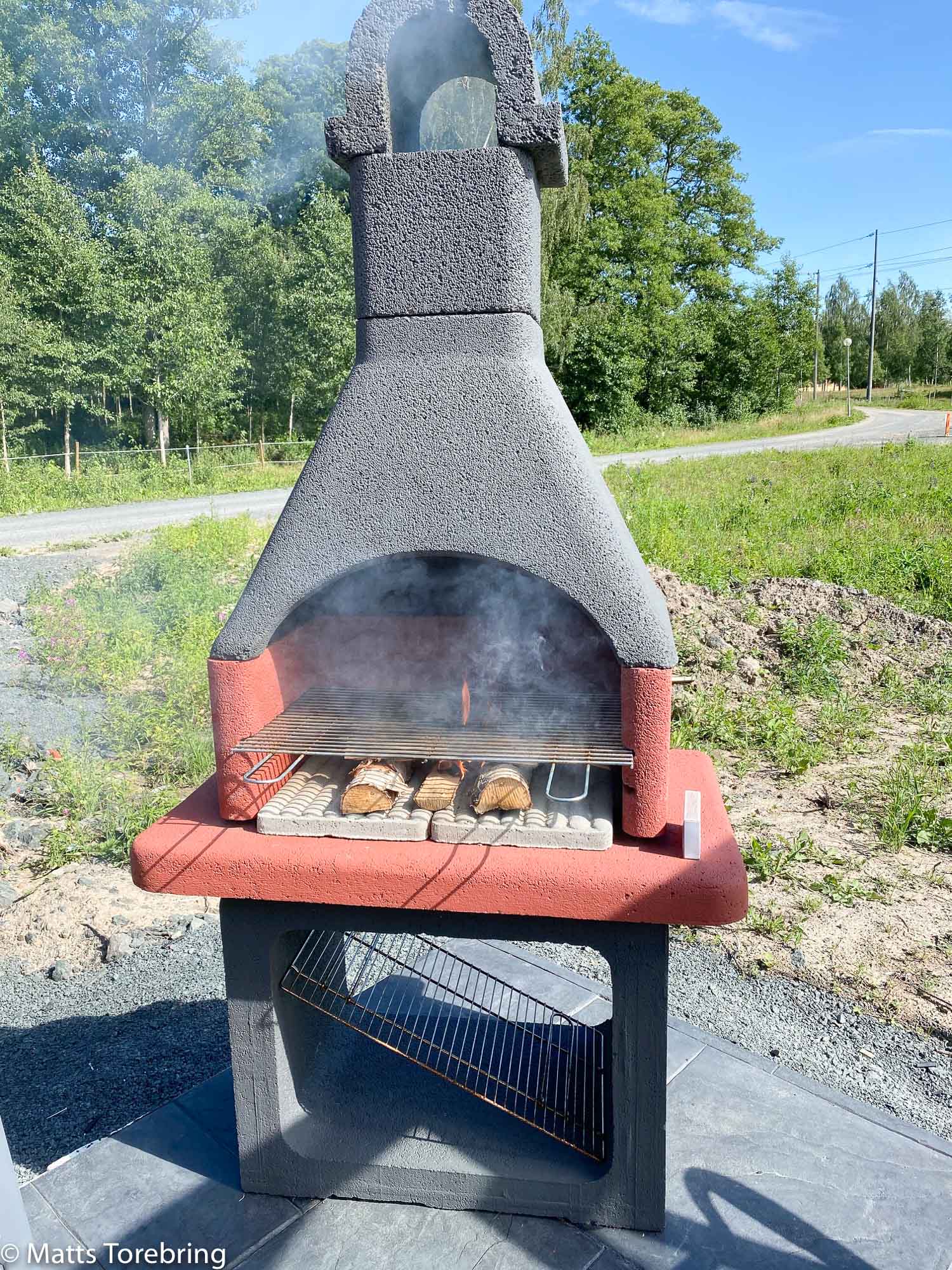 Denna har stått oanvänd i minst tio år Vi köpte denna murstensgrill när jag gjorde om baksidan på förra villan. Då ställde vi den under altan. Vi vågade dock inte använda den, för att vi var rädda för gnistor. som skulle kunna tränga in i altangolvet.